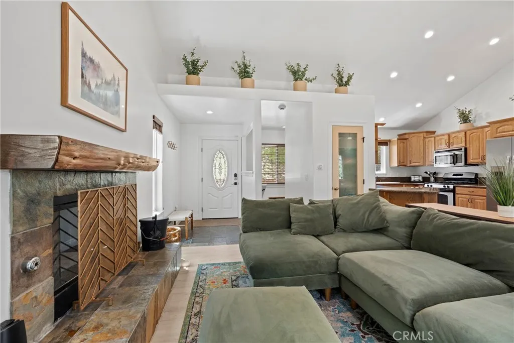 Beautiful and Bright - this Contemporary Little Lodge is the Perfect Place to find Peace in the Pines. Level Entry into the Lovely Living Room with Soaring Ceilings and Stunning Forest Views. Dining Area opens to the well appointed Kitchen with Granite Countertops, Stainless Steel Appliances and Plenty of Cabinets - the Custom Pantry Door is a Special Designer Touch. Main Level benefits from a Half Bath plus Laundry Room. Direct Entry into the Kitchen from the Attached Garage. Downstairs features another Family Room with a Sweet Hot Tub Deck - a Real Treehouse Vibe. Primary Suite plus 2 Guest Rooms makes this a Perfect Floorplan with High End and Custom Finishes. Thoughtfully Updated (2022 - Now) with New Flooring, New Interior Paint, New Decking, New Refrigerator, New Hot Tub and All New Furniture. Offered Turnkey Furnished. Well Equipped with EV Charger, Central A/C, Tankless Hot Water Heater and Smarthome Features including Thermostat, Exterior Cameras, Doorbell and Keyless Entry. Home has a successful Air BnB Record and has been a Great Family Escape too. Lake Rights Retreat - Situated moments from the Golf Course at Lake Arrowhead Country Club and Miles of Hiking Trails in the San Bernardino National Forest. Located on a County Plowed, Paved and Maintained Road for Easy Access Year Round. Elevate Yourself to a Moutain Lifestyle where the Air is a little Fresher, the Stars are a little Brighter and Time lasts a little Longer.