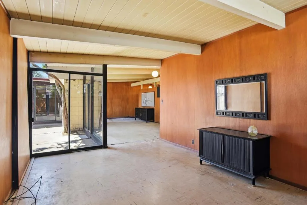 Experience the timeless appeal of mid-century modern design with this rare Eichler-style gem, perfectly positioned for ultimate convenience. Located just minutes from Highways 92 and 101, the Caltrain station, Trader Joes, and the vibrant dining of downtown San Mateo, this home offers an unparalleled lifestyle location. The architectural charm is highlighted by signature floor-to-ceiling glass doors that seamlessly connect the living spaces to a private, desirable sideyard. This indoor-outdoor flow extends to the primary suite, which also features its own floor-to-ceiling glass sliding door opening directly to the outdoors. Boasting "good bones," a classic floor plan, and a spacious backyard, this residence is a brilliant blank canvas ready for your creative reimagination. While the property is in mostly original condition and requires a complete renovation, it presents a spectacular opportunity to restore a piece of architectural history or craft a bespoke modern masterpiece.