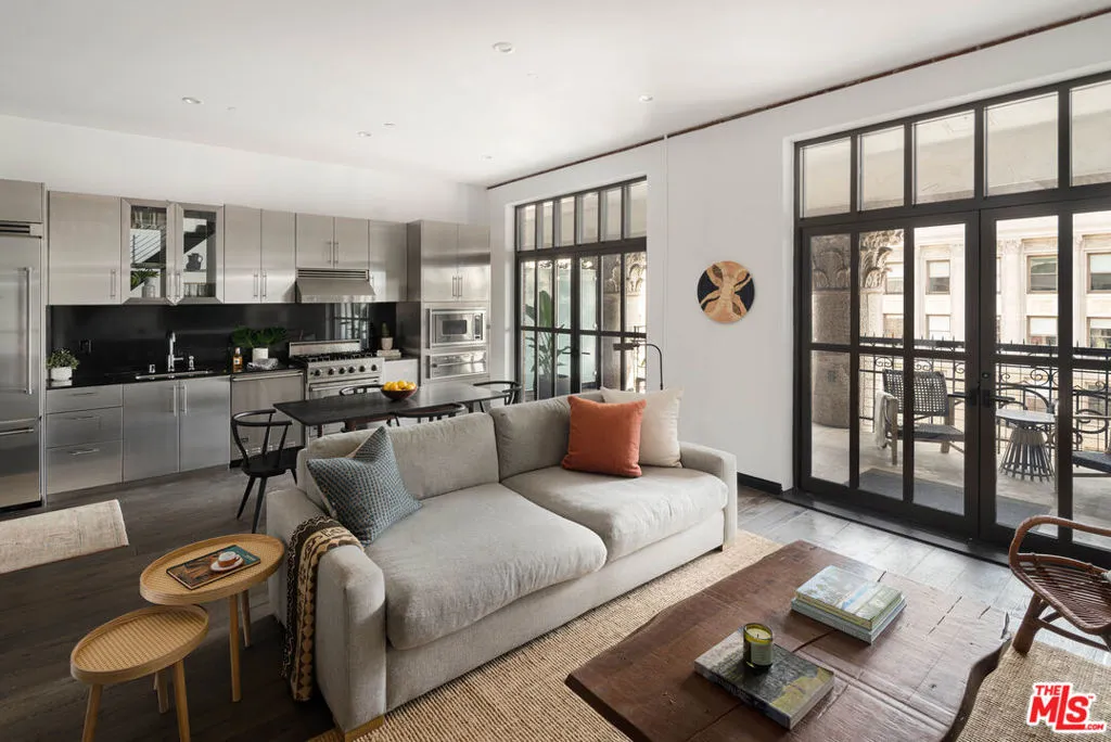 This recently updated, east-facing penthouse at The Broadway Hollywood pairs iconic Art Deco architecture with expansive city views and dramatic floor-to-ceiling windows, making it a true standout within one of Hollywood's most historic buildings. A generous open-plan living space sets the tone, offering ample room for both living and dining while capturing views of the Capitol Records Building, the Hollywood Sign, Griffith Observatory, and the Hollywood Hills. Newly updated wood floors run throughout, while the kitchen features premium stainless steel appliances and connects seamlessly to an expansive balcony accessible from both the living room and kitchen, extending the living space outdoors. Upstairs, a private one-bedroom suite provides a comfortable retreat, complete with its own balcony, sitting area, full bathroom, and an updated in-unit washer and dryer. Thoughtfully designed to support both living and working, the unit balances openness with privacy across two levels. Benefiting from the Mills Act, the residence offers significant property tax savings alongside full-service amenities including valet parking for two cars and 24-hour security, rooftop pool, spa. Ideally located near Equinox, Trader Joe's, Barry's Bootcamp, the Sunday Hollywood Farmers Market, and many of Hollywood's most notable dining destinations, this pet-friendly penthouse delivers the best of historic character and modern city living.