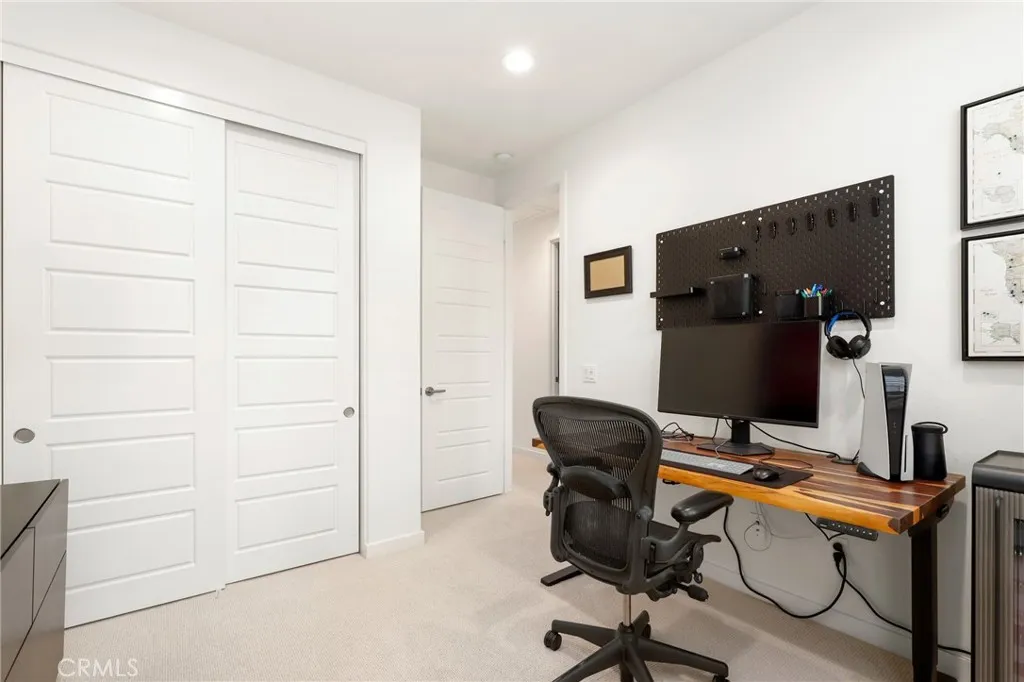 Welcome to 55 Sanctuary, a stunning tri-level home offering 3 bedrooms, 3.5 bathrooms, and approximately 1,938 square feet of thoughtfully designed living space in the newer Neo community of Mission Hills, ideally located in North Mission Viejo. Designed with today’s lifestyle in mind, the entry level features direct access to a spacious two-car attached garage along with a versatile flex room that can easily function as a home office, media room, workout space, or play area — giving you the flexibility to customize the home to your needs. The main living level presents a bright and inviting open-concept layout enhanced by high ceilings, large windows that flood the space with natural light, and modern recessed lighting. The kitchen serves as the centerpiece of the home, showcasing a large quartz island, sleek soft-close cabinetry, stainless steel appliances, and a spacious walk-in pantry. The living and dining areas flow seamlessly together and open to a private balcony — an ideal setting for morning coffee, casual dining, or unwinding at the end of the day. Upstairs, the primary suite offers a relaxing sanctuary complete with a generous walk-in closet and a spa-style bathroom featuring dual sinks and an oversized walk-in shower. Two additional bedrooms, a full bathroom, and a conveniently positioned laundry area round out the top level, providing both functionality and comfort for everyday living. This smart home includes integrated technology designed for convenience, including smart lighting, Wi-Fi mesh connectivity, climate control, smart locks, video doorbell capability, OWNED SOLAR, and a connected garage system. Additional upgrades include an EV charging outlet and an energy-efficient tankless water heater. Residents of Neo enjoy access to resort-inspired amenities including a pool and spa, fire pit seating areas, playgrounds, and BBQ gathering spaces — perfect for relaxing and entertaining. Ideally located near top-rated schools, shopping, dining, and outdoor recreation including Whiting Ranch and O’Neill Regional Park, 55 Sanctuary delivers the perfect blend of modern design, comfort, and convenience. With NO Mello Roos, this home represents outstanding value in a newer Mission Viejo community.