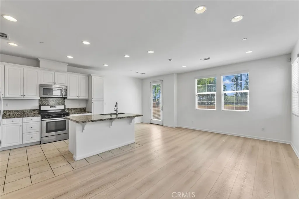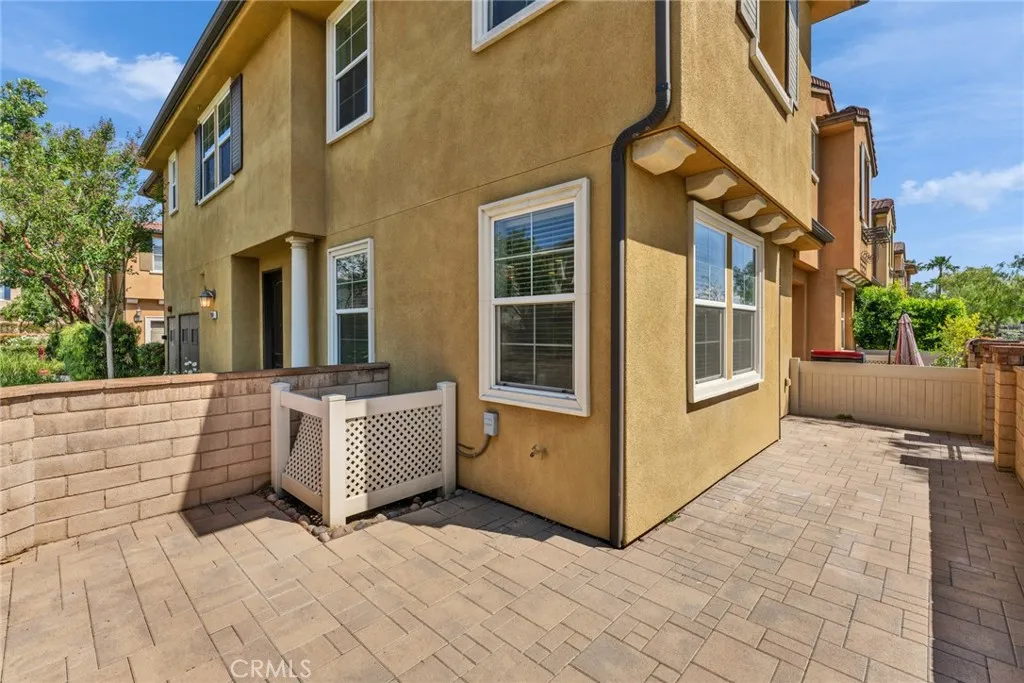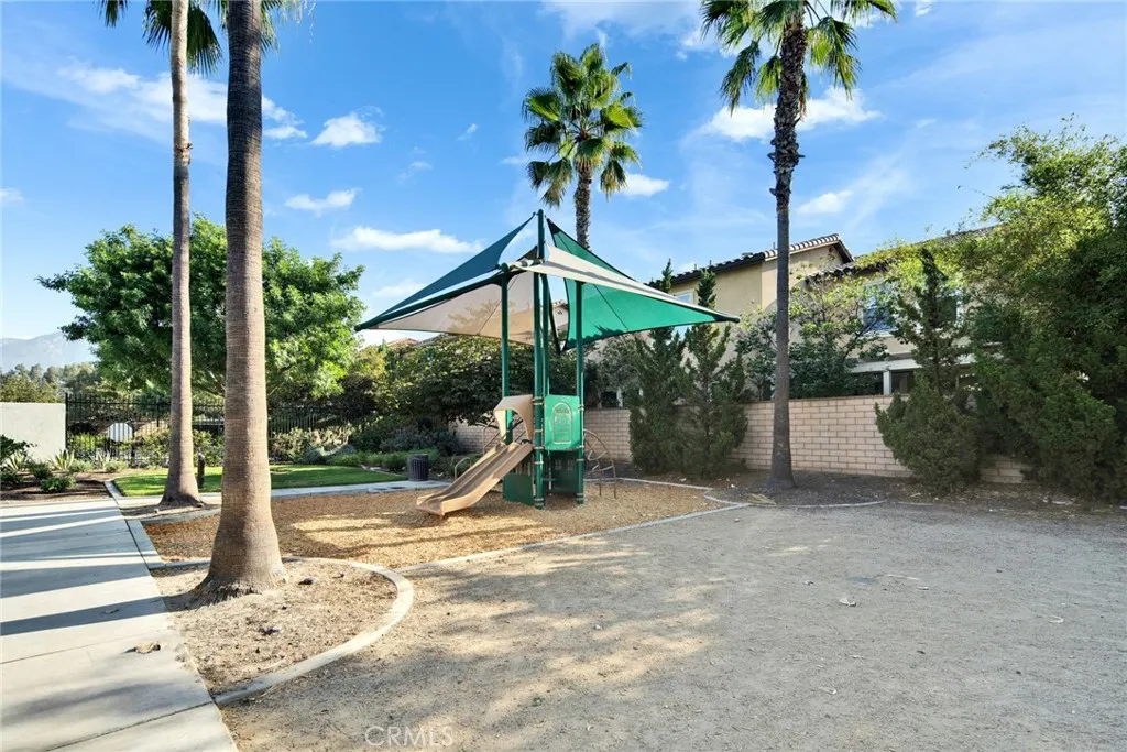Great Location! Gated community, 2-story end unit with extra landscaped yard by front door. Wood flooring throughout the house. Open floor plan combining living room, kitchen and dinning room. Side door to private side yard. Kitchen with stainless steel appliances including the refrigerator, granite counter tops with white cabinets. Kitchen island with sink can be breakfast bar. Half bathroom downstairs, extra large storage space under the stairs, 2 car garage with direct access to the house. Upstairs has 4 bedroom, 2 bathroom and laundry room. Large master bedroom with walk-in closet. Hallway bathroom with dual sink and shower with tub. Community pool, park and BBQ area. About 2 miles to Ontario Mills, Costco and all the restaurants and shops.