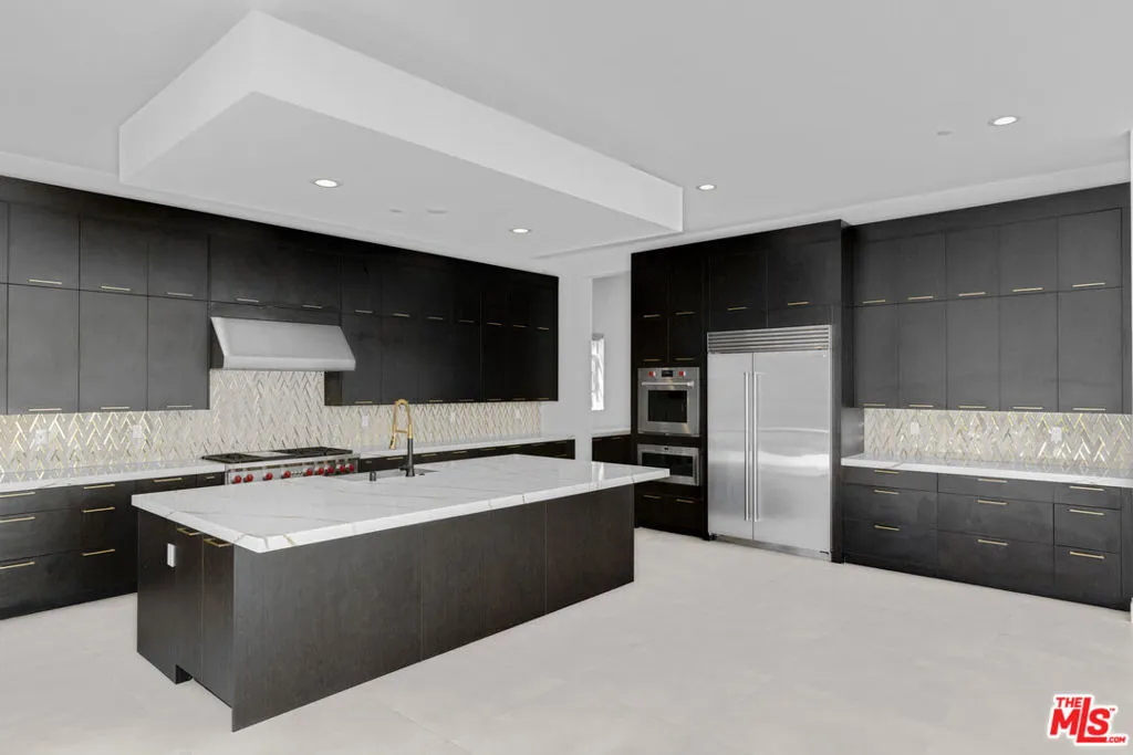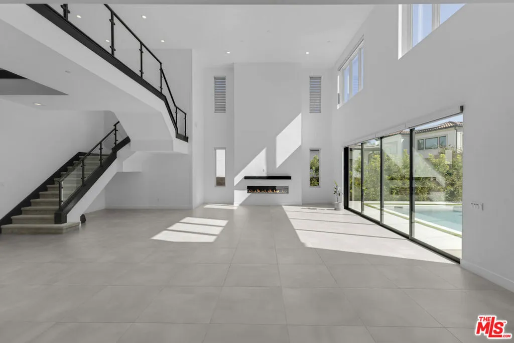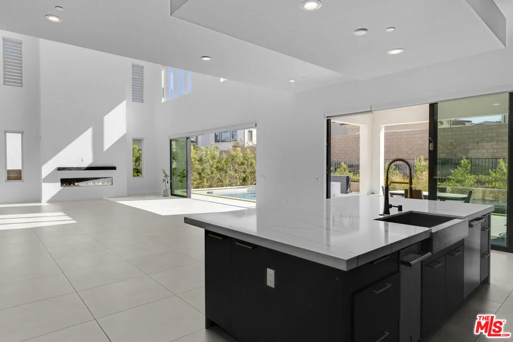 Ultra-Modern Two-Story Estate in Westcliffe, Porter Ranch. This extraordinary residence showcases the highly sought-after Santi floor plan from the prestigious Summit Collection in Porter Ranch's exclusive guard-gated Westcliffe community. Set on a private cul-de-sac and positioned on an oversized flat lot high in the hills, this spectacular estate offers luxury, privacy, and sophistication at every turn. This stunning open-concept home spans approximately 5,400 sq ft and features 5 bedrooms, 6 bathrooms, a spacious loft, flex space, and private office. What truly sets this estate apart is its unique location, expansive lot size, and incredible indoor-outdoor lifestyle. From the moment you enter, you're greeted by a majestic foyer with a dramatic glass staircase and exceptional designer finishes throughout. The home is filled with natural light, enhanced by expansive glass doors and oversized windows, showcasing the beautiful modern color palette and seamless flow. Highlights include stone tile flooring throughout the main level, an oversized great room with a striking 72-inch modern fireplace with color-changing crystals, and a showstopping chef's kitchen with a massive stone island, stone countertops, and top-of-the-line Sub-Zero and Wolf appliances. Elevating the living experience even further, the home is equipped with built-in speakers throughout for a seamless audio experience, electric window shades and owned solar panels.The luxurious primary suite is a true retreat, featuring a spacious sitting area, colossal walk-in closet, dressing area, and an exceptional spa-inspired designer bathroom. All four secondary bedrooms are ensuite, including one conveniently located on the first floor. Additional versatile spaces include an office/media room and fitness gym.Step outside to your own private resort. The spectacular backyard is designed for elevated entertaining and everyday enjoyment, complete with a luxury designer pool and jacuzzi, custom pergola creating the ultimate outdoor lounge..perfect for enjoying a movie under the stars or hosting unforgettable game nights in a resort-style setting, outdoor BBQ, large side area.. an expansive wraparound yard with ample space to relax, host, and enjoy the best of Southern California living. There is also generous parking space, adding to the home's rare functionality and appeal.Located in one of Porter Ranch's most affluent and sought-after communities, Westcliffe offers newly built luxury estates behind a guarded gate entrance. This prime location is just moments from The Vineyards at Porter Ranch, featuring Whole Foods, AMC luxury theater, Nordstrom Rack, fine dining, award-winning schools, and convenient access to the 118 freeway. Be sure to check out the virtual walkthrough video of this exceptional home.