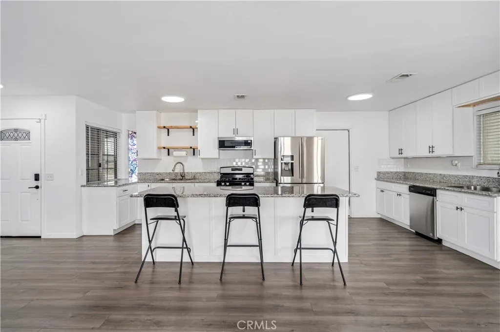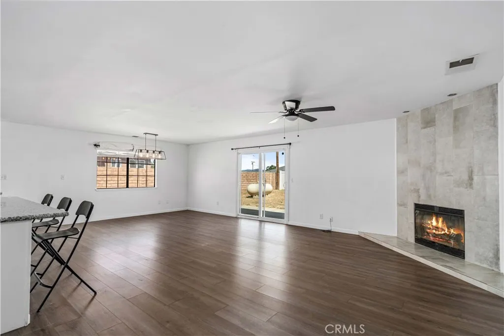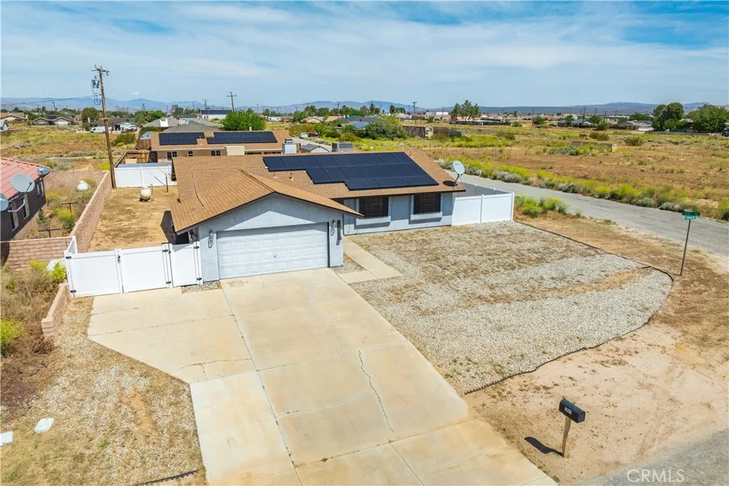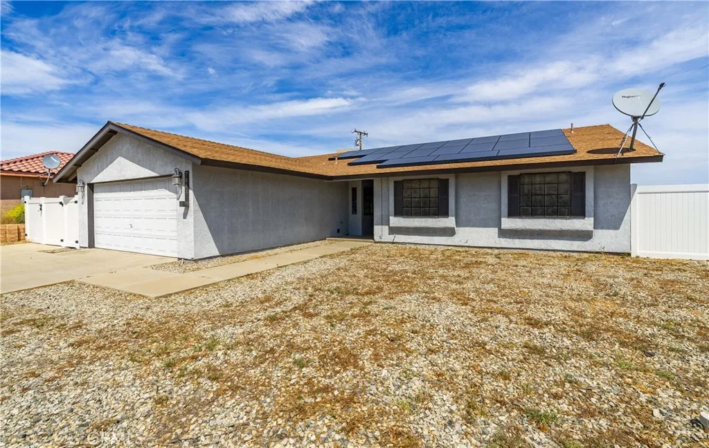 Corner Lot, RV Gate & Parking, Upgraded, Open Concept, Near Edwards Air Force Base. Welcome to this beautifully upgraded 3 bedroom, 2 bathroom home located in California City, CA in Kern County, great location for those aerospace professionals commuting to Edwards AFB, Mojave Air & Space Port, Northrop Grumman, or Lockheed Martin. This property offers extra space, privacy, and endless potential. Inside, you'll find a bright open-concept floor plan featuring a huge living and kitchen combo, perfect for entertaining. The floor-to-ceiling tiled fireplace is a stunning focal point, creating a modern, HGTV-style feel. The oversized kitchen island anchors the home and includes dual sinks with a dedicated prep area, ideal for cooking and hosting. The kitchen showcases sleek, modern upgrades with both style and functionality in mind. Enjoy upgraded modern flooring, updated lighting, and designer touches throughout. Both bathrooms feature beautiful tile surrounds in the tub/showers, giving a clean and elevated finish. The primary bedroom offers a comfortable layout with a large closet and great natural light. Step outside to your nearly quarter-acre lot, providing room for RV parking, outdoor entertaining, or future customization. All appliances included, making this home truly move-in ready. This is the perfect opportunity to own a turnkey home combining modern design, space, and commuter convenience in one. Quick move in. with Solar! Check out the video tour!