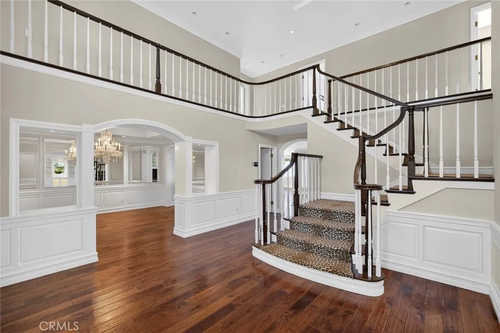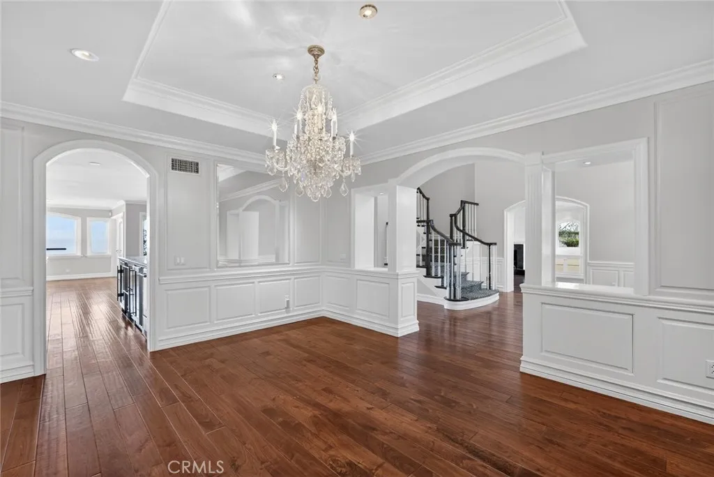 Welcome the sought-after Spyglass Hill community of Corona Del Mar! Upon your arrival, you’ll be welcomed by a spectacular custom home boasting awe-inspiring 180-degree panoramic views of the coastline. Enjoy the striking vistas of Catalina, Newport Harbor, Palos Verdes, and the bustling Los Angeles skyline—transforming every moment into a breathtaking scene. Step inside through the impressive entrance that establishes an atmosphere of luxury. To your left, you’ll find an elegant formal dining room adorned with exquisite wood paneling; to your right, a refined formal living room with a marble fireplace, custom cabinetry, and stunning walnut hardwood floors that flow throughout the residence. At the heart of the home lies a gourmet kitchen designed to inspire your culinary adventures. Outfitted with Rosso Levanto marble countertops, a full-size Subzero refrigerator and freezer, and premium Thermador appliances—including a six-burner stove with griddle, double ovens, and a microwave with heating drawer—this space invites culinary creativity. The kitchen seamlessly opens to a wet bar featuring a Subzero wine fridge and GE drink drawers, providing the perfect setting for entertaining. Casual dining is easily accommodated at the barstool seating or the welcoming dining table, connecting you to the spacious family room. On this level, you’ll also discover a guest bedroom with an en-suite featuring a marble shower accented with Carrera marble, as well as a dedicated laundry room equipped with Maytag appliances. Ascend to the upper level to find a luxurious haven, complete with three additional bedrooms, an office, a bonus room, and a gym. The pièce de résistance is the stunning primary suite, which offers a cozy sitting area, its own marble fireplace, and, of course, breathtaking views that are sure to impress. Indulge in the generous walk-in closet and a lavish bathroom with Crema Marfil marble floors and countertops, where relaxation becomes a daily ritual. This immaculate home embodies modern luxury and timeless sophistication, featuring a three-car garage, gated entry, and beautiful gardens—creating an inviting retreat. Experience the ultimate in comfort and elegance in a truly outstanding rental waiting for you!