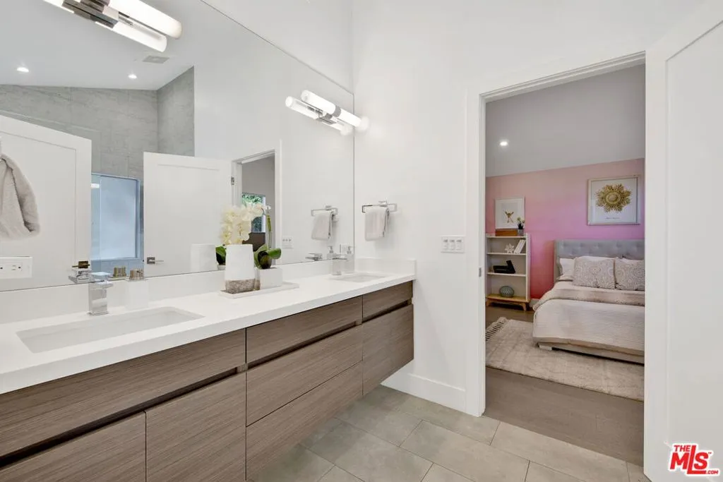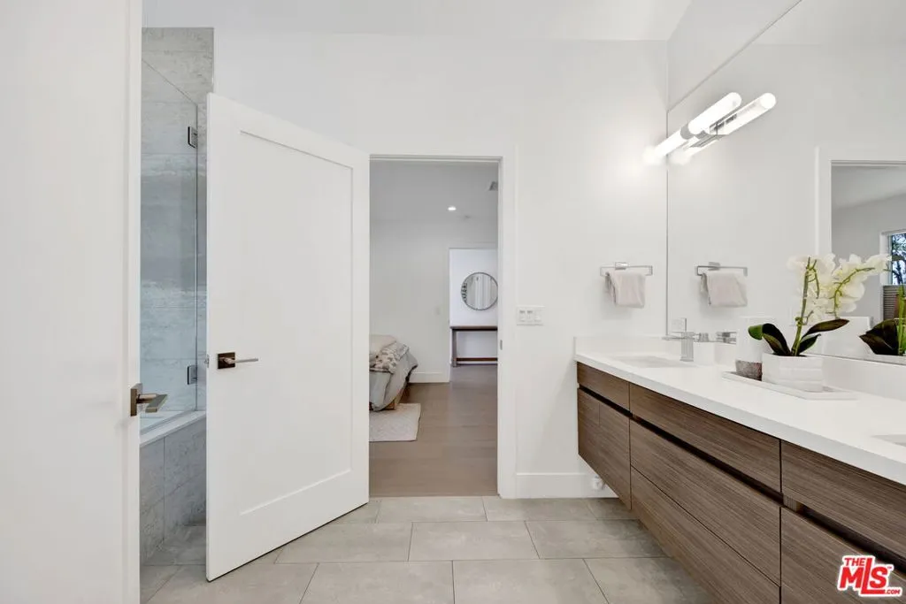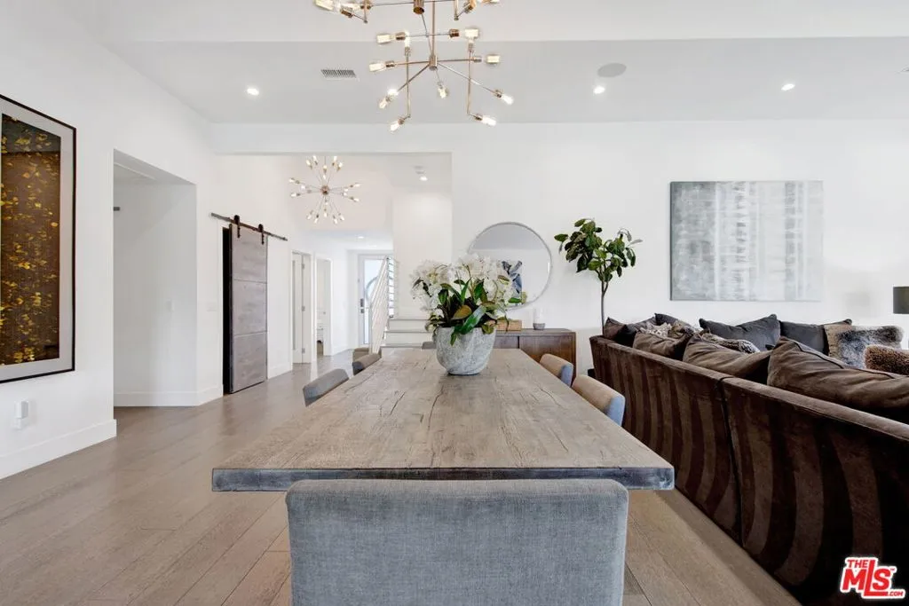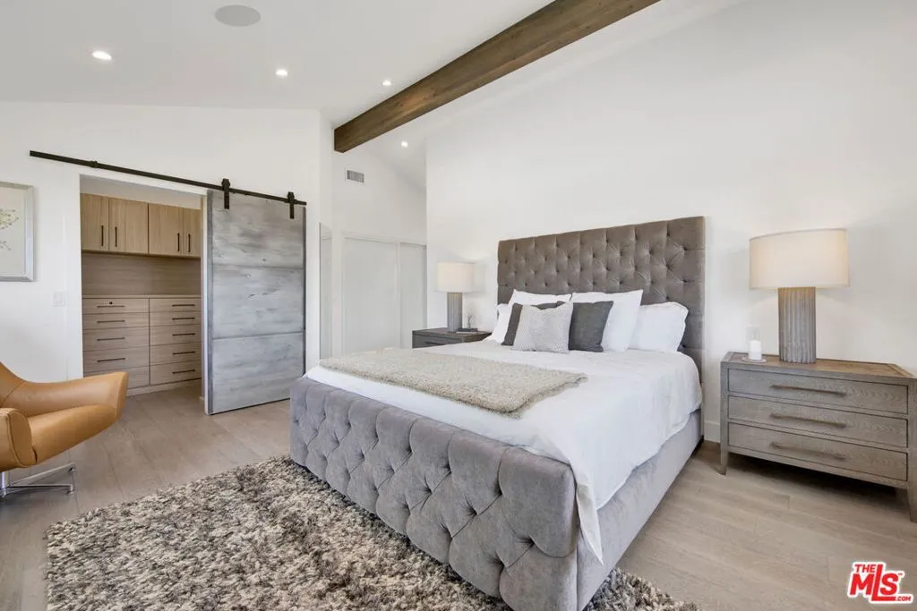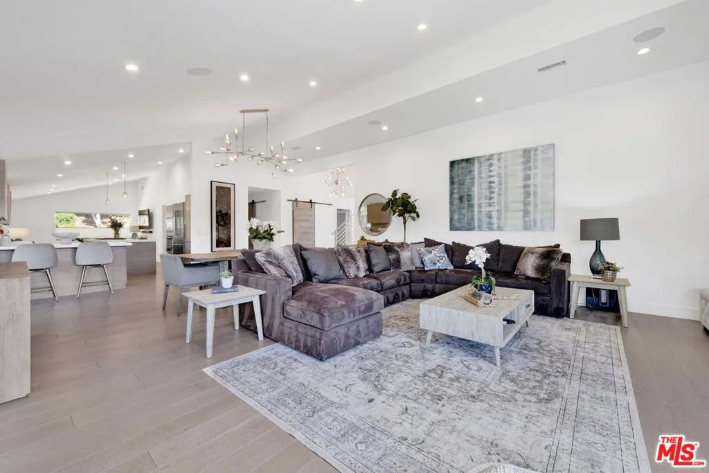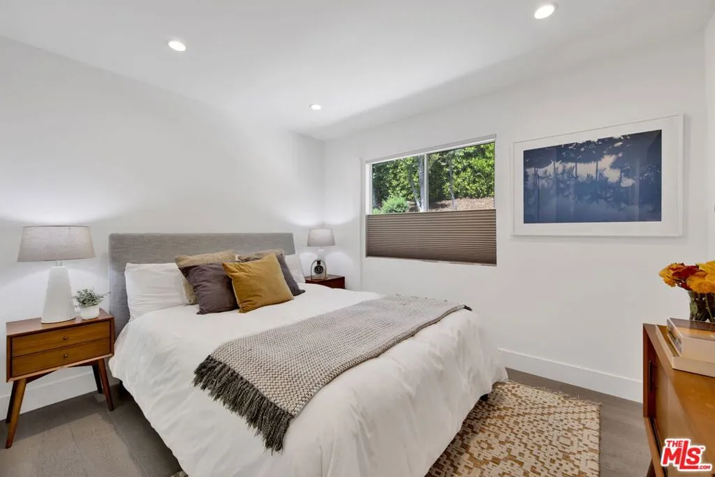 Beautifully remodeled with breathtaking canyon and mountain views, this 5BD/4BA canyon retreat blends timeless design with modern living. Vaulted ceilings, hardwood floors, and walls of glass fill the home with natural light and showcase sweeping vistas. The chef's kitchen features a center island, custom cabinetry, and stainless steel appliances, opening to a spacious family room ideal for entertaining. The dining area flows seamlessly to a resort-style backyard featuring a pool with built-in spa, custom outdoor kitchen with wood-fired pizza oven, built-in BBQ, and beverage refrigerators. Designed for both entertaining and play, the yard also includes a children's play structure with swings, monkey bars, slide, and a sportscourt. A covered outdoor patio with heaters features a full dining table, fire pit, and lounge seating. The upstairs primary suite offers a peaceful retreat with a beautifully updated bath and dual closets. Additional bedrooms on the main level provide flexibility for family, guests or office use. 3000 sq ft of living space set on approximately 10,000 sq ft lot in the tranquil hills of Brentwood. Also available for lease $22,500 per month.