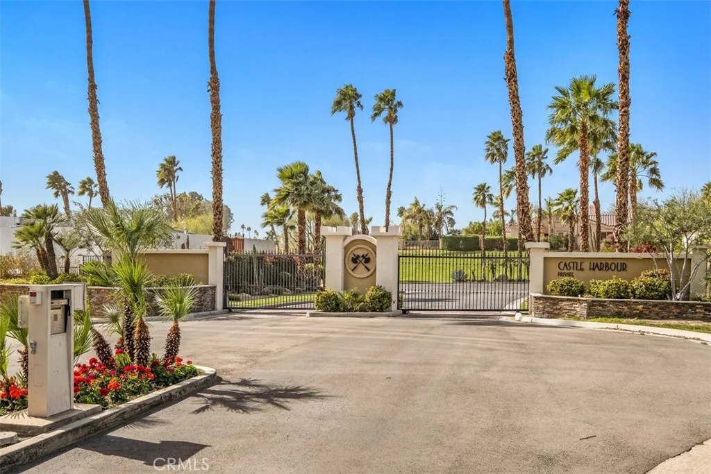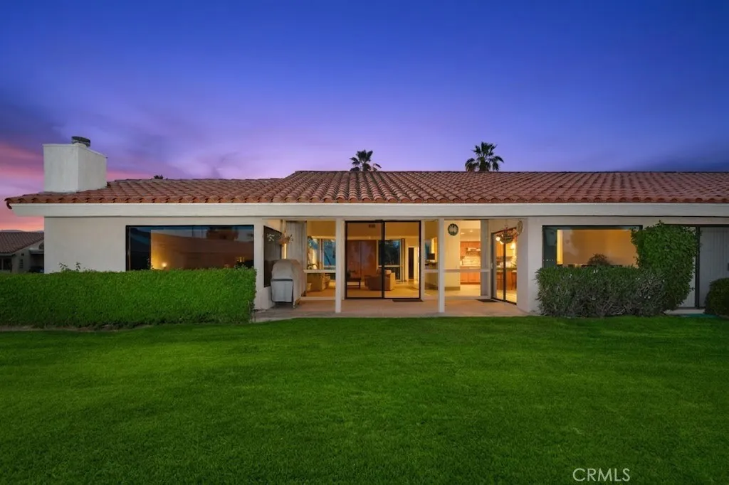 Experience the pinnacle of desert living in this expansive 3-bedroom, 3-bathroom residence located within the prestigious, 24-hour guard-gated enclave of Bermuda Dunes Country Club. Nearly 2,400 square feet of single-story living space, this home greets you with dramatic vaulted ceilings and an open-concept layout that feels both grand and inviting. The primary living area is bathed in natural light, offering a seamless flow between the lounge, dining area, and a cleverly integrated office nook perfect for those seeking a dedicated workspace. The home’s architecture masterfully blends the indoors with the outdoors, featuring soaring floor-to-ceiling sliding glass doors in every room. These massive glass panels not only flood the interior with the warm desert sun but also provide effortless access to the patio spaces from every corner of the house. Whether you are in the main living area, the bedrooms, or the oversized den—which can easily transition into a second primary suite—you are never more than a step away from panoramic views of the manicured driving range, the clubhouse, and the stunning mountain silhouettes. Designed for the ultimate golf enthusiast, this property comes fully equipped for life on the fairways with its own dedicated golf cart garage. To make your move even more seamless, the sale includes the golf cart itself, ensuring you are ready to hit the greens or cruise to the clubhouse the moment you receive the keys. Residents of the Montego West community enjoy a low-maintenance, resort-style atmosphere with access to multiple sparkling pools, soothing spas, and tennis courts, while the HOA manages exterior maintenance, roofing, and landscaping. Practicality meets luxury with the inclusion of an attached car garage and the significant financial advantage of being located within the Imperial Irrigation District (IID), which offers much lower electricity rates than neighboring utility zones. Whether you are looking for a sophisticated full-time residence or a lock-and-leave seasonal retreat, this property offers an unparalleled combination of space, security, and scenic beauty. With your glass doors open to the desert breeze and your golf cart parked and ready, the legendary Coachella Valley lifestyle is yours to enjoy.