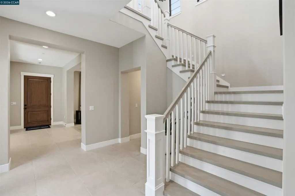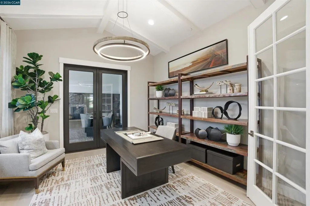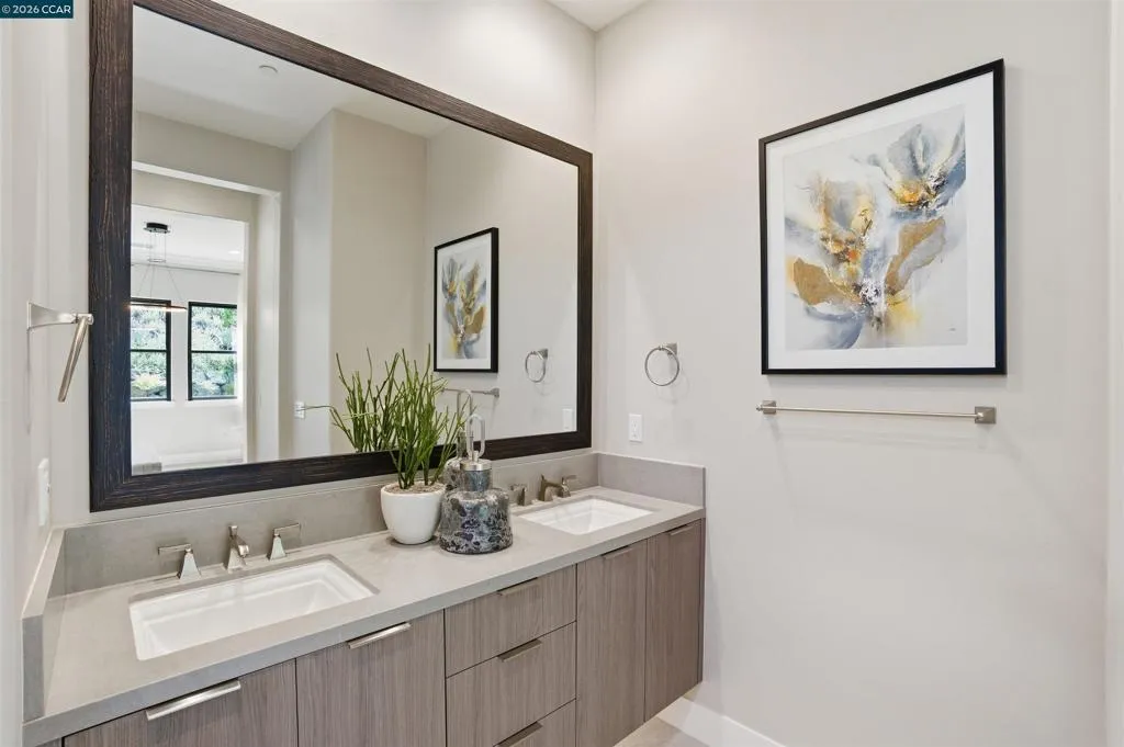 The best of Magee Preserve’s homes, just a mile from Diablo Country Club, comes to market for the first time. More than 380 acres of open space surround the property, yet the amenities of Danville are close by. Enter from the porch, with a living room and office on either side, and pass the unique interior courtyard and fireplace. The heart of the home is the open-concept kitchen, adjoining an informal dining nook with both table and bar seating, and a family room looking out to the hillside beyond. The formal dining room and butler’s pantry serving it sit adjacent. Elevated ceilings and distinctive plank hardwoods grace the premises throughout, and hidden ceiling speakers set the mood. A bedroom with en-suite bath, ideal for guests, completes the first floor. Four more bedrooms (each with en-suite bath), a rec room, and a deck overlooking the interior courtyard lie upstairs. The principal suite has a huge bedroom, 2 walk-in closets, and a bathroom with an oversized shower and soaking tub. A laundry sits on both floors. The back yard exemplifies the best of Danville outdoor living, with a barbecue, counter space, ample deck space, a manicured garden, and a firepit. The hillside beyond offers gorgeous views ranging from green to golden with the season.