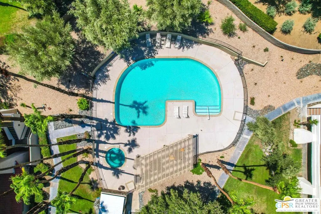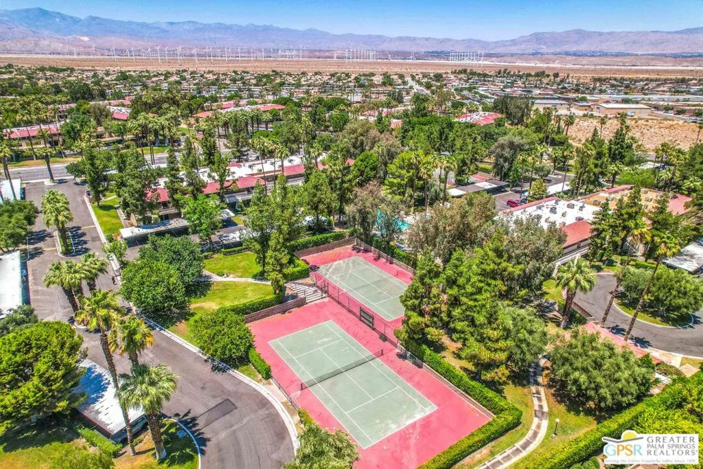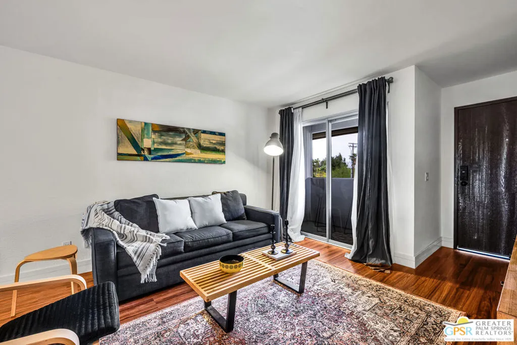 Modern Retreat. They say good things come in small packages, and this stylishly updated second-floor condo is the proof. Offering modern comfort in a perfectly scaled footprint, the interior features a custom floating media cabinet, sleek stainless appliances, and soft-close cabinetry that keeps the vibe fresh and organized. Significant upgrades provide total peace of mind, including a brand-new A/C system installed in the summer of 2025 and a remodeled bathroom complete with a classic black & white subway tiled shower and integrated niche shelf. The community feels like a desert sanctuary, where you can spend your days enjoying the sparkling pools, relaxing spas, and tennis courts set against a backdrop of mature landscaping and beautiful San Jacinto mountain views. For the outdoor enthusiasts, you are perfectly positioned near the CV Link, the Aerial Tramway, and world-class hiking trails, all while staying just minutes from the energy of Downtown Palm Springs. This home comes partially furnished and sits on Fee Land, making it easy for full-time living, a weekend escape or a savvy investment opportunity.