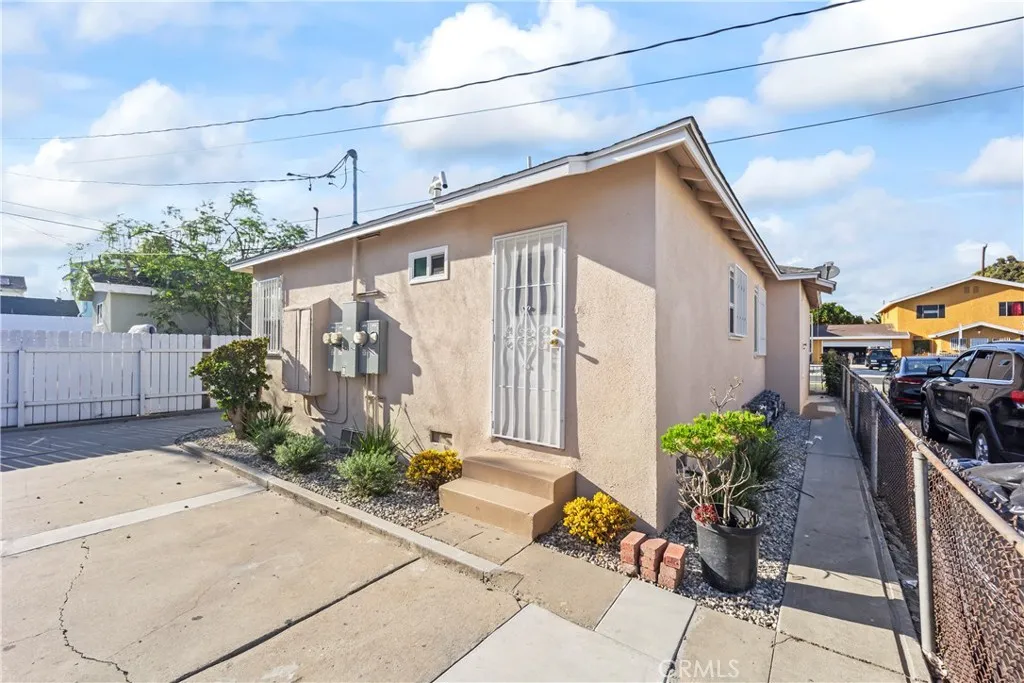 Charming 4 unit property for sale in South Gate, NO CITY RENT CONTROL! Versatile unit mix of two 1-bedroom units and two 2-bedroom units. Three of the units have been tastefully renovated with new flooring, kitchens and bathrooms. All units have had upgraded plumbing supply lines and electrical panels. Ideal to live in one and rent the others or an investor looking for a addition to their portfolio. Convientely located near shopping, schools and daily conveniences.