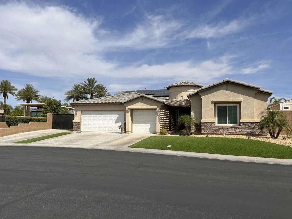 Welcome to this beautiful home located in the desirable Shadow Hills community. Offering 2,763 sq ft of living space on a generous 10,890 sq ft lot, this 3-bedroom, 2-bath plus den residence features an open and spacious floor plan designed for comfortable living and entertaining.The home showcases a unique dual-sided fireplace connecting the living room and den, creating a warm and inviting atmosphere. The primary suite offers a walk-in closet and glass sliding doors with direct access to the backyard, along with an upgraded shower in the primary bath.Enjoy the benefits of major upgrades paid solar, two new AC units, and new dual-pane windows throughout for energy efficiency and comfort. The garage has been enhanced with an epoxy floor and mini-split system, ideal for a workspace, gym, or additional use.Step outside to a beautifully sized backyard featuring a pool and spa, a palapa and plenty of space for entertaining. The property also offers wide RV parking and a Tough Shed located in the side yard for additional storage.A must-see!
