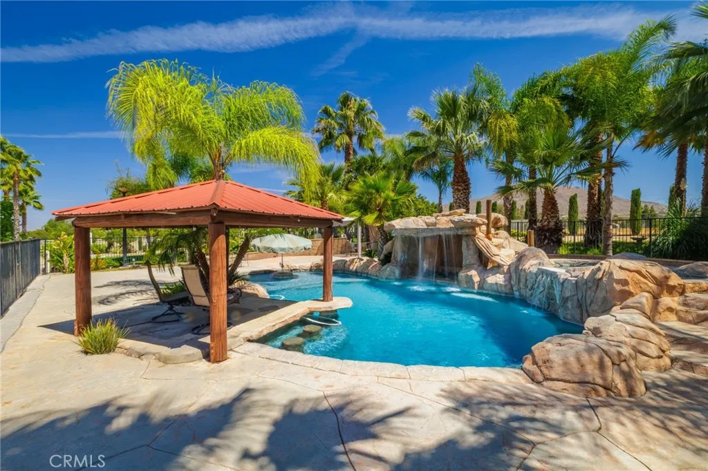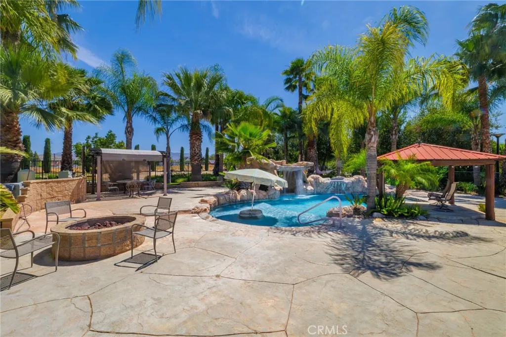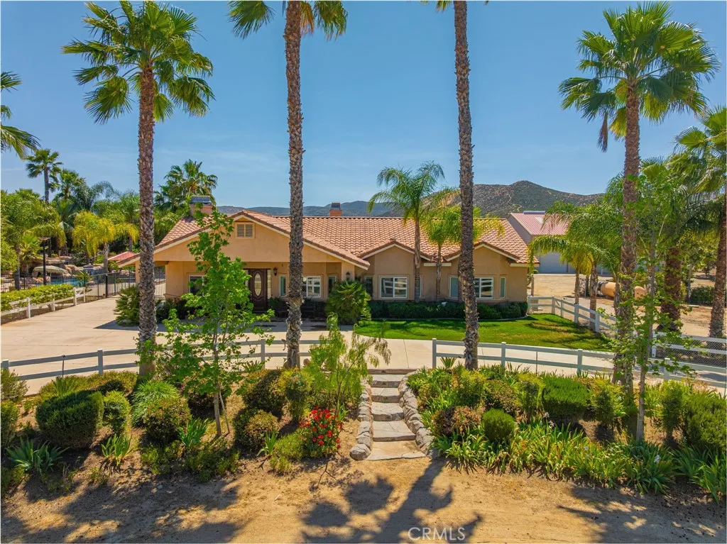 Welcome to a one of a kind private resort style estate tucked away on the outskirts of Temecula Wine country. Set on three beautifully maintained acres, this property offers a rare blend of privacy, space, and a lifestyle that truly stands apart. From the moment you arrive, you’re greeted by your own private driveway with a roundabout entrance leading to a three car garage, along with plenty of room for guests, toys, or future expansion. Step outside and the property really comes to life. At the center is a resort style pool complete with a built in swim up bar, spa, and fireplace, creating the perfect setting to relax, entertain, and enjoy year round. Just beyond, a peaceful koi pond with a bridge adds a sense of calm, while the private garden and over 30 fruit trees including avocado, citrus, pomegranate, figs, and more bring beauty and function together in a way that’s hard to find. The grounds are thoughtfully laid out to host at any level. Whether it’s weddings, retreats, large family gatherings, or simply enjoying your own space, you have expansive lawn areas, mature landscaping, and privacy like no other with no rear neighbors. Adding to the versatility, the property features a massive 3,600 plus square foot warehouse with two fully equipped ADUs, ideal for multi generational living, rental income, or extended stays. Inside, the home is designed for both comfort and connection, offering multiple living areas, a spacious kitchen built for gathering, and private suites that overlook the grounds. And the location ties it all together, just 20 minutes from Temecula Wine Country, while still being within 10 minutes of shopping, dining, and schools. This is more than a home, it’s your own private resort built for the way you want to live. Don’t miss your chance to own this slice of paradise.