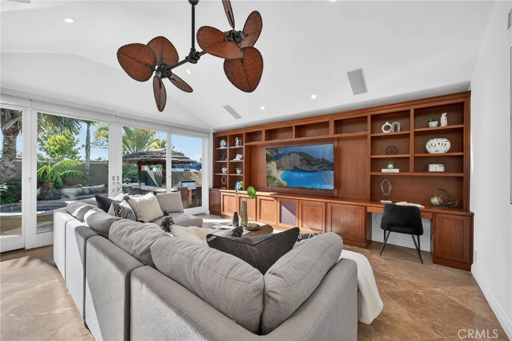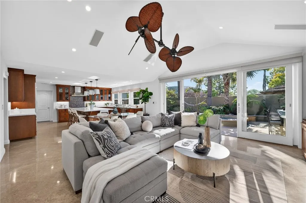 Located in the highly sought-after Cal Classic neighborhood, this stunning coastal residence offers exceptional curb appeal and embodies the best of Southern California coastal living. With a large double driveway, manicured front yard, and mature palm trees, the home makes an immediate impression. Beautifully updated and truly turnkey, this is a gorgeous entertainer’s home designed for both comfort and style. Inside, you’ll find fresh interior and exterior paint, hardwood flooring, and a thoughtfully designed layout featuring 3 spacious bedrooms and 2.5 bathrooms, along with air conditioning. The chef’s kitchen showcases new quartz countertops, a large center island with bar seating, prep sink, ice maker, and beverage refrigerator. Appliances include a six-burner Wolf range, built-in refrigerator, microwave, and dishwasher, plus a pantry with pull-out drawers. The family room features vaulted ceilings and opens through expansive sliders to the backyard, creating seamless indoor-outdoor living. It includes a built-in entertainment center with custom shelving, a brand-new QLED TV, and a custom multi-head ceiling fan. Additional highlights include a formal living room with a gas fireplace and an elegant staircase with iron railing. The primary suite offers built-in shelving, a beverage refrigerator, and a spa-inspired bath with soaking tub, walk-in shower, and a large walk-in closet with custom organizers. French doors lead to a private deck overlooking the backyard. Two additional bedrooms include custom closet systems, and the secondary bath features custom tile and a tub. The backyard is a true oasis with a pool, spa, waterfall, grotto, outdoor lighting, built-in BBQ and bar, plus an outdoor shower and bathroom. The 2-car garage features new epoxy flooring, a 220-volt outlet for EV charging, and pull-down attic storage. A separate laundry room adds convenience. This is a rare opportunity to own a move-in ready coastal home in one of the area’s most desirable neighborhoods.