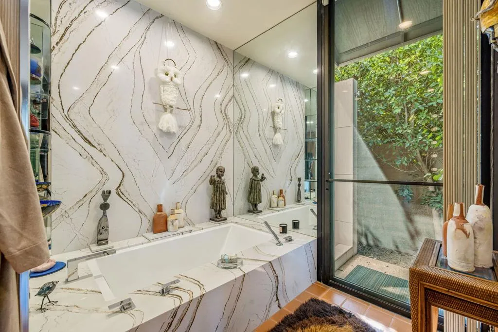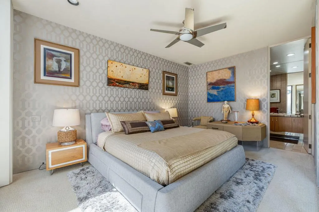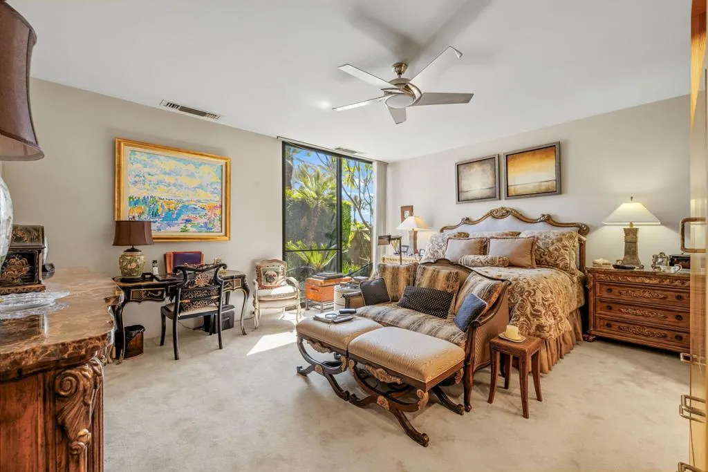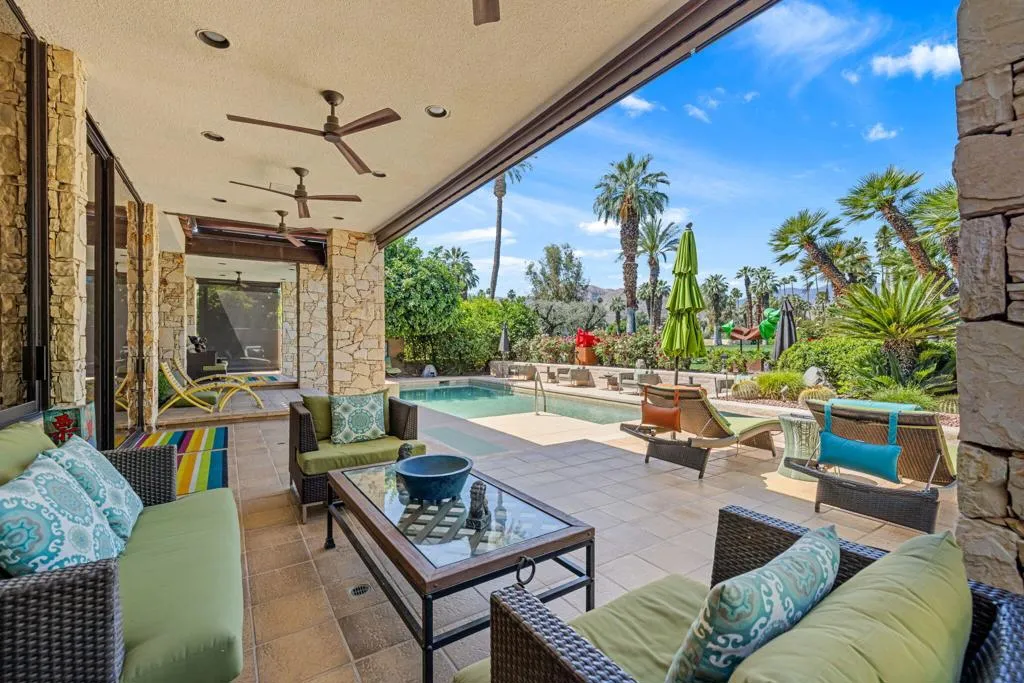 Iconic Steve Chase design at Tamarisk Country Club, this immaculate west-facing residence captures the glamour, scale, and refinement that defined one of the desert's most celebrated designers. Perfectly positioned on the golf course, the home enjoys sweeping fairway views, mountain vistas, and a rare sense of privacy, all within one of Rancho Mirage's most storied country club settings.A dramatic arrival sets the tone to this 5,302 sq ft home with a gracious covered entry, mature landscaping, and sculptural presence introducing interiors that feel both grand and deeply livable. Inside, Steve Chase's signature sensibility is immediately felt in the rich materiality and confident scale: soaring wood-clad ceilings, expansive stone surfaces, walls of glass, and beautifully proportioned living spaces designed for both quiet enjoyment and sophisticated entertaining. The rooms unfold with an elegant sense of volume and flow, while curated architectural details create warmth, texture, and a distinctly timeless character.Impeccably maintained and presented in pristine condition, the home offers a rare combination of design pedigree and everyday comfort. Natural light moves beautifully through the interiors, highlighting the craftsmanship, the dramatic entertaining spaces, and the seamless connection to the surrounding landscape. Overlooking the course with a coveted western orientation, this is a residence that honors the legacy of Steve Chase while delivering the privacy, beauty, and classic desert lifestyle that continue to draw discerning buyers to Tamarisk.