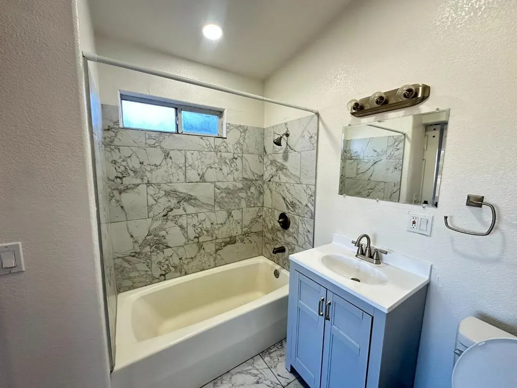 Live Smart. Earn Income. Move-In Ready. This beautifully renovated property offers the perfect blend of comfort, style, and income potential. The front home features 3 bedrooms and 2 bathrooms, while the rear unit includes 1 bedroom and 1 bathroom ideal for rental income, multi-generational living, or a private guest space. Step inside to a bright, modern interior with new flooring, fresh paint, and upgraded lighting throughout. The kitchen is designed to impress with quartz countertops, sleek cabinetry, stainless steel appliances, and a clean tile backsplash. Updated bathrooms add a fresh, contemporary feel, while the open living spaces create a warm and inviting atmosphere. Outside, the spacious lot offers endless possibilities: design your dream backyard, create entertaining space, or expand further. Whether you're looking to offset your mortgage, generate cash flow, or enjoy flexible living, this property checks every box. Opportunities like this are rare, don't miss your chance to own a turnkey home with built-in income potential!