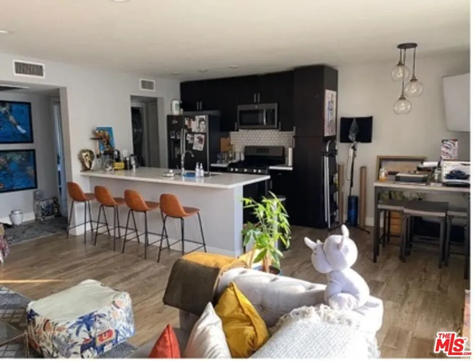 This 2-bd/2-bth second floor condo is located on a tree-lined street. Condo shows engineered hardwood floors throughout the unit with two spacious bedrooms. A primary bedroom with an ensuite bathroom with a separate vanity area. kitchen is outfitted with stainless steel appliances, oversized sink, tile backsplash and quartz countertops. Gas appliances include a fridge, oven, stove, microwave, dishwasher, and a portable coffee maker. There is a breakfast bar with provided seating. Amenities include central air, a communal pool, an underground parking space, and an additional storage room for tenant belongings. There is an in-unit laundry space featuring stackable washer and dryer. This unit can be delivered furnished or not. Please note that all artwork will be removed. Furniture is optional. Minutes from the 101 Frwy, 1-405 access, and Ventura Blvd. Four miles to either Encino or Woodland Hills and the Westfield Topanga Mall. Providence Cedars Sinai Tarzana Med-Center is near with a variety of shopping and Restaurants to choose from. Access to the G-line bikeway, Sepulveda Basin Recreation Area, and for hikers and scene seekers the Marvin Braude Mulholland Gateway Park.