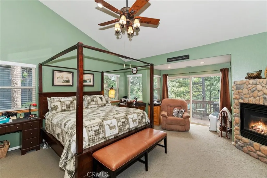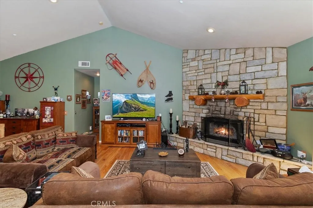 Experience refined mountain living in this beautifully crafted 3,100 sq ft custom-built retreat, where thoughtful design meets timeless rustic elegance. ~ With 4 bedrooms and 3 baths, this level-entry home offers both convenience and luxury. The main-level master retreat is a true sanctuary, featuring a cozy fireplace, spa-style soaking tub, walk-in shower, and an oversized walk-in closet designed for comfort and ease. ~ At the heart of the home, the impressive great room showcases a striking wood-burning stone fireplace, and an open-concept layout that seamlessly connects the kitchen, dining, and living areas—perfect for entertaining and everyday living. Also is a private office or could be formal dining room or home gym or?? ~ Step outside to enjoy two expansive decks nestled among towering pines. One extends from the great room for effortless indoor-outdoor gatherings, while the second—accessible from the game room—offers a more private space to relax and unwind. ~ Downstairs, the oversized game room is an entertainer’s dream, complete with a third fireplace, wet bar, and billiards/ping pong—ideal for hosting friends and family year-round. Offered mostly all furnished & decorated, ready to move on in. ~ Custom details are evident throughout, from rich solid-oak flooring and unique kitchen finishes to handcrafted log railings that enhance the home’s mountain character. Modern upgrades include newer appliances, air conditioning, and a Generac generator for added peace of mind. ~ This exceptional property blends comfort, craftsmanship, and style—creating the perfect mountain escape or full-time residence. Includes full Lake Priveleges to the pristine blue waters of the private Lake Arrowhead. Located just 8 houses down to the lake trail and less then 1 mile to Blue Jay for shopping and dining. Public utilities & High-speed internet.