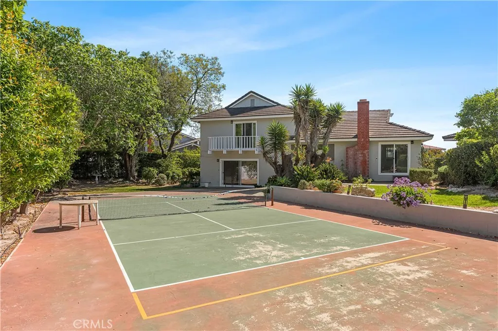 Must see! Well maintained 3 bed 3 bath home with pickleball court tucked at the end of a quiet cul-de-sac in the desirable Mesa Palos Verdes neighborhood of Rancho Palos Verdes. This spacious 2,052 sq. ft. residence sits on a beautiful 10,075 sq. ft. lot offering privacy, a large flat backyard, and excellent outdoor living potential. Inside, the home features a bright kitchen with double-pane windows, generously sized living and dining areas with a brick fireplace, and updated flooring in the main living room. Recently upgraded sliding doors open to the backyard with your own full size private pickleball court, patio and grassy space, and plenty of room to expand or design your ideal outdoor retreat. Home needs some cosmetic upgrades; however, in overall great condition including the roof and exterior. Additional highlights include solar panels, five true bedrooms, and an attached two-car garage, providing flexible space for work, guests, fitness, or hobbies. There is also $30,000 in appliance upgrades, not installed yet, included with the sale. Has some ocean view off of the front of the house. Conveniently located near award-winning Palos Verdes schools, parks, shopping, trails, and the scenic coastline. A great opportunity to update, remodel, or reimagine a solid home in one of RPV’s most sought-after neighborhoods. OPEN HOUSE SUNDAY! Come see.