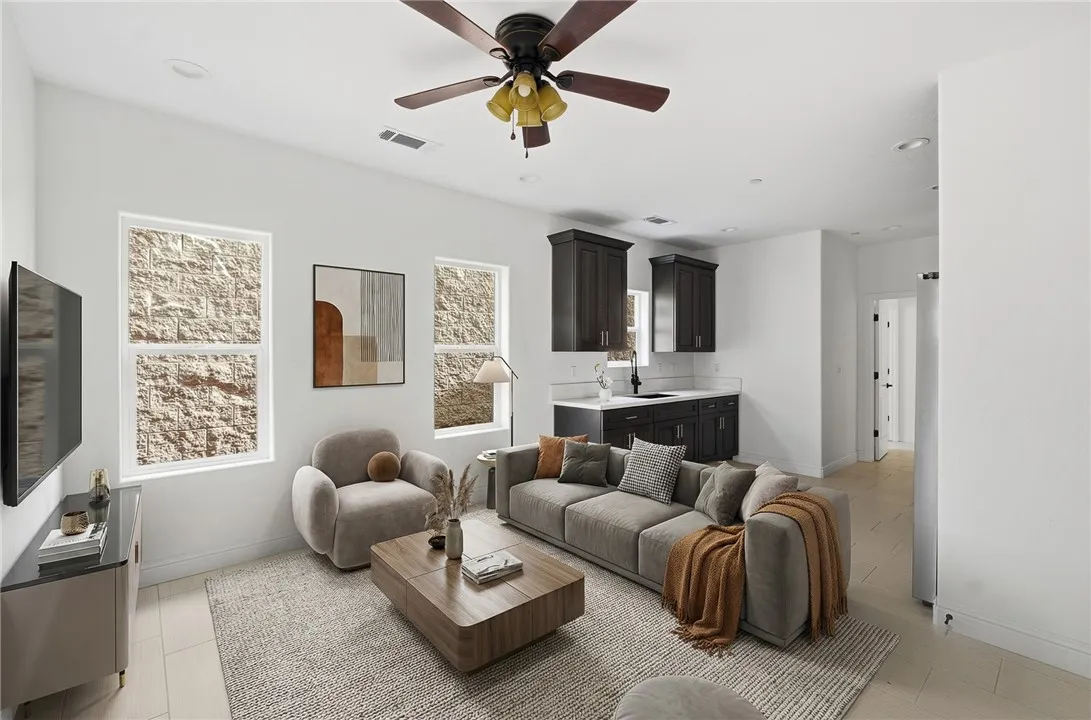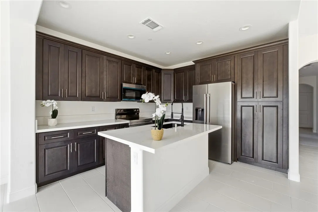 Stunning custom-built new construction in an established NW Visalia subdivision! This thoughtfully designed 5-bedroom, 3-bath home includes fully attached 1-bedroom, 1-bath mother-in-law quarters complete with its own kitchen and living area and a private entrance. Perfect for multigenerational living, guests, or rental income potential. Step inside to soaring high ceilings, beautiful tile flooring throughout, and an open-concept floor plan filled with abundant natural light. The spacious layout seamlessly connects the living, dining, and kitchen areas, creating an ideal setting for both everyday living and entertaining. Brand-new stainless steel appliances are included in both the main home and the mother-in-law quarters, making this property truly move-in ready. Additional highlights include a durable tile roof, energy-efficient solar panels, and abundant storage space throughout the home. The well-appointed laundry room features built-in cabinetry and a utility sink. home also features a mud room coming in from the 2 car attached garage for added convenience and functionality. Enjoy outdoor living year-round with a covered patio under the roofline, all situated on an expansive 13,000 sq ft lot offering space, privacy and endless possibilities. Located in a highly sought-after school district within a well-established neighborhood, this home offers the perfect blend of modern comfort, efficiency, and prime location. A rare opportunity you don't want to miss!