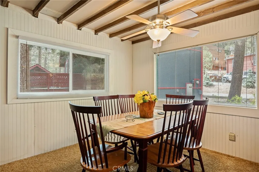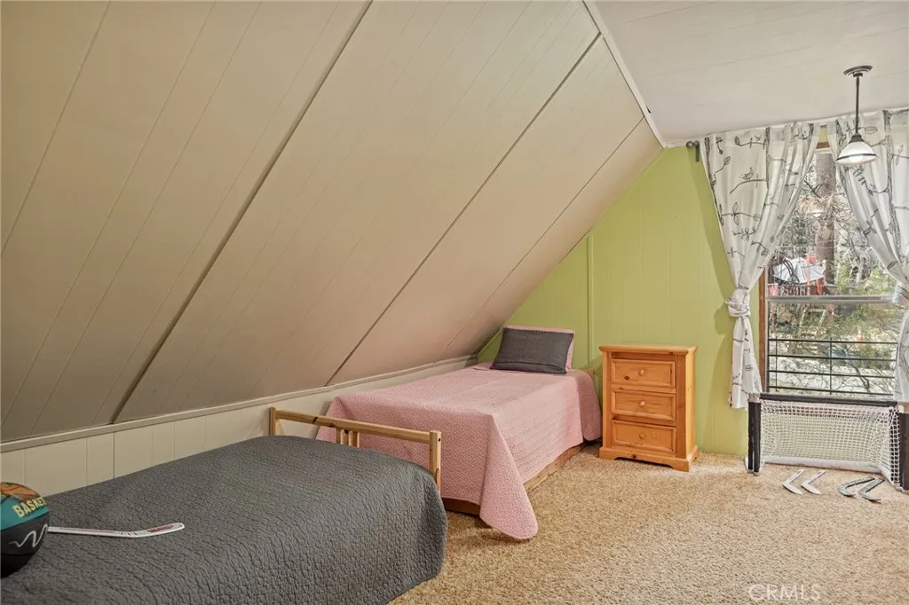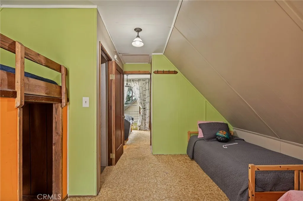 Nestled among giant Sequoia Redwood trees and seasonal creek you will find these cute1961 cabin with 936 square feet of living space and 3,780 Sq Ft lot. This cabin includes 2 bedrooms, 2 bedrooms 2 bathrooms and a large sleeping loft. Amenities are double pane windows, storage room, large level parking and new back deck. Enter the first level and you'll find an open sunny kitchen, big dining room with two large windows, living room with a cast-iron wood burning stove, one large bedroom and bath. The second level offers a large loft with two twin-beds and a large playhouse with full size bed, second bedroom and a remodel quarter bath. This property sleeps 8 guests. Enjoy the beautiful back yard under the canopy of the majestic redwood trees, the sound of the chirping birds and running creek. The cabin is situated within walking distance of the lake, grocery store restaurants and miles of forest trails.