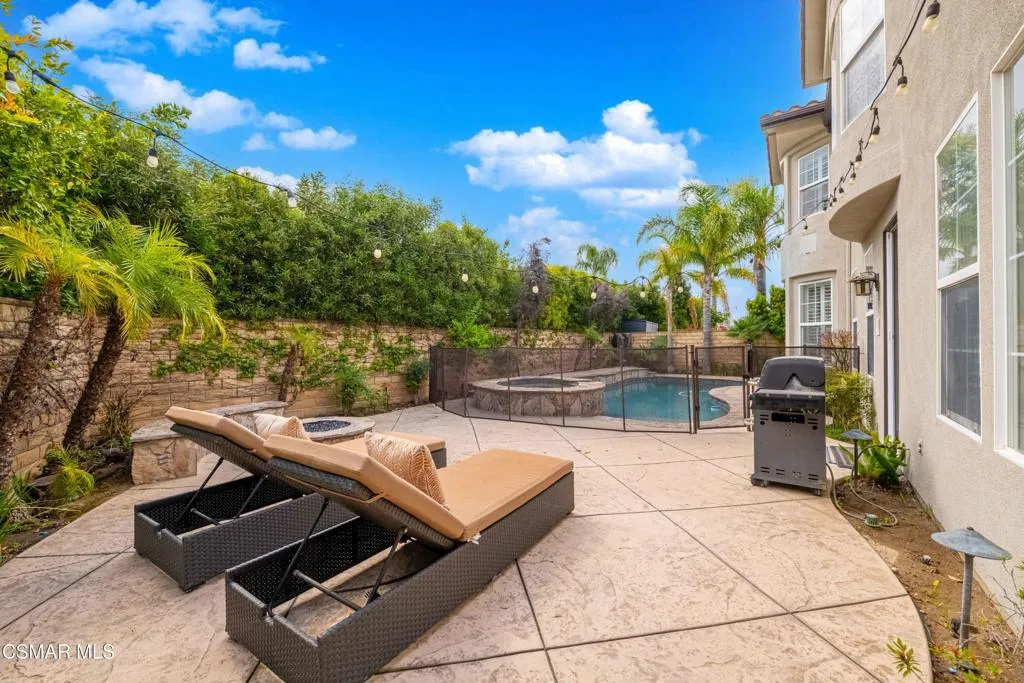 Welcome to 3140 Eaglewood Ave, an exceptional residence located on a cul-de-sac street within the prestigious 24-hour guard-gated community of Woodridge Estates in Thousand Oaks. Offering approximately 4,100 square feet of thoughtfully designed living space, this 5-bedroom, 5-bathroom home with a 3-car garage combines timeless architecture with modern updates, creating a home that is both elegant and highly functional.Upon entry, you're greeted by soaring ceilings and an abundance of natural light, complemented by custom window shutters found throughout the home, enhancing both style and privacy. The open and inviting floor plan is designed to accommodate a variety of lifestyles, featuring a desirable main-level bedroom and multiple living and entertaining spaces. A formal dining room provides a refined setting for gatherings, while the beautifully remodeled kitchen serves as the heart of the home, complete with a large center island with waterfall quartz countertops, farmhouse sink, Wolf appliances, double ovens, a breakfast counter, and a charming breakfast nook.Upstairs, an expansive bonus room offers versatility as a media room, game room, or additional family living space. On the lower level, a wine cellar closet adds a unique and elevated touch, perfect for collectors and entertainers alike. Thoughtful upgrades and custom details are carried throughout, creating a cohesive and polished living experience.The backyard is designed for both relaxation and entertaining, featuring a private pool and spa, along with a built-in BBQ area--perfect for enjoying Southern California's seamless indoor-outdoor lifestyle.Set within one of Thousand Oaks' most sought-after gated communities, this home offers privacy, security, and a true sense of community, all while being conveniently located near top-rated schools, shopping, dining, and scenic outdoor spaces.