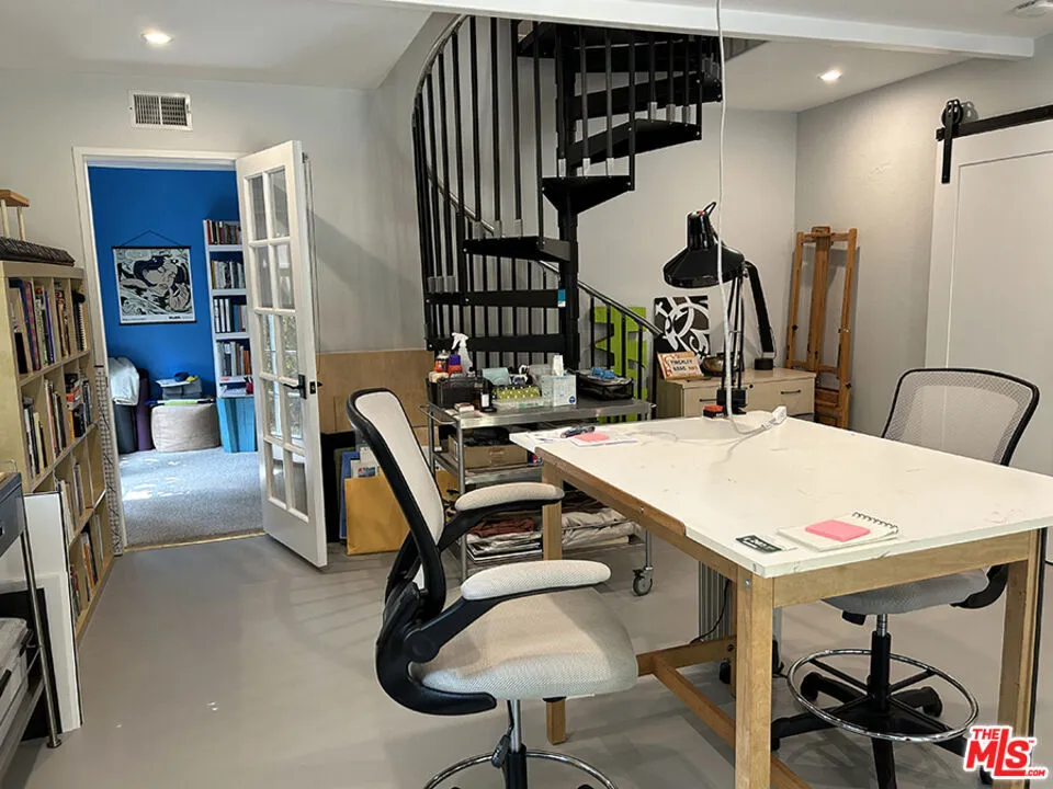 Nestled in the charming and peaceful community of Sierra Madre, just blocks from its quaint town center filled with boutique shops, cozy cafes, and local dining, this beautifully remodeled home offers the perfect blend of comfort, style, and functionality. This exceptional 4-bedroom, 3-bath residence with a spacious studio has been thoughtfully upgraded throughout. Recent improvements include a new roof (2025), a 240-volt EV plug, fiber optic wiring, and a fully integrated TV and speaker system with Apple compatibility. The light-filled kitchen features high ceilings, abundant windows, newer cabinetry with pull-out drawers, a pantry, and a dedicated coffee station. Premium appliances include a 6-burner Thermador range, Thermador dishwasher, GE Monogram refrigerator, and built-in microwave, perfect for both everyday living and entertaining. Each bedroom offers unique character, with stylish finishes such as barn-style closet doors, ceiling fans, and elegant fandeliers. The primary suite is a true retreat, complete with a walk-in closet and French doors opening to a private balcony overlooking the serene backyard. The spa-inspired primary bath includes a soaking tub, oversized shower, illuminated mirrors, and thoughtful storage, including a built-in full-length mirror and laundry chute. A striking spiral staircase leads to a versatile upper-level studio filled with natural light, ideal for a creative workspace, gym, or retreat. This level also includes a private office with a vintage desk, a half bath, and an expansive laundry room with generous storage, a stackable GE washer/dryer, a tankless water heater, a utility sink, and a pull-out hanging system. Step outside through French doors into a professionally landscaped backyard designed for relaxation. Enjoy peaceful moments by the running pond and charming bridge, or gather around the firepit in this tranquil outdoor setting. With thoughtful upgrades, flexible living spaces, and an unbeatable location, this is truly a must-see home.
