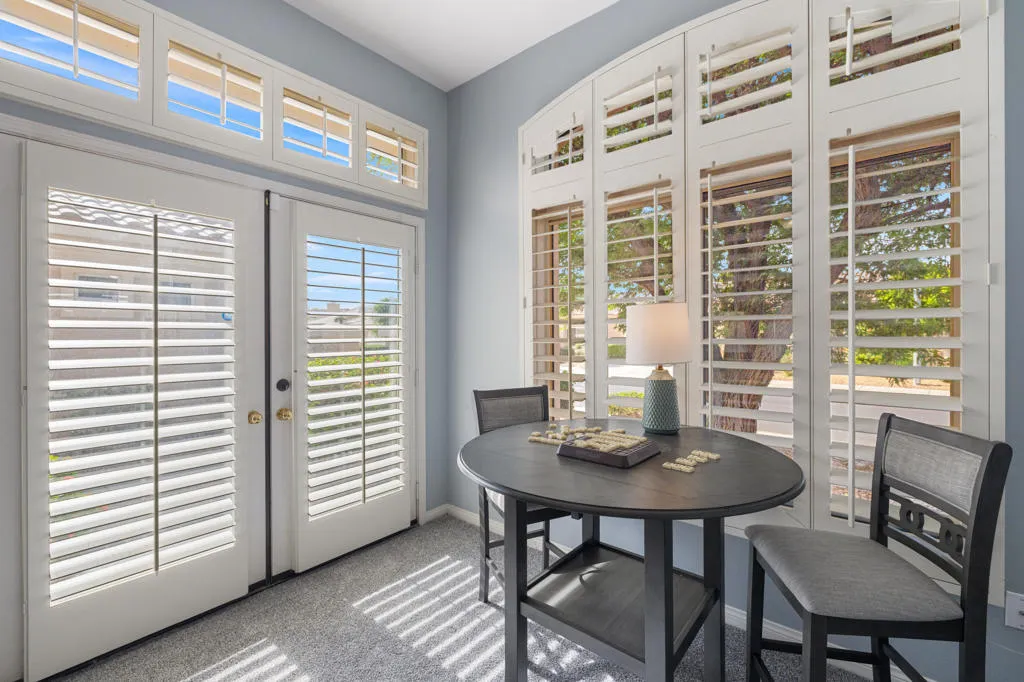 55+ Sun City Palm Desert--The ''Best Bang for your Buck'' in the whole Coachella Valley and beyond. Rarely does an opportunity come along to own one of the most coveted floor plans in this award-winning active lifestyle adult community in the desert. Introducing a truly spectacular Emerald ''Estate'' model home with 3 bedrooms and 3 bathrooms situated on a rare oversized corner lot located close to the main Mountain View Clubhouse. This luxurous home offers unmatched privacy, curb appeal, outdoor living and entertaining potential. You will find premium upgrades featuring a double door entry with custom glass insert, high coffered ceilings, plantation shutters, (4) skylights, wood-like plank tile throughout except guest room, and new HVAC (2025). A gated courtyard leads through double glass doors, opening up to the light and bright main living and dining area, a wall of windows and a sliding door access to the cool north facing backyard. Gather in the heart of the home, the open-concept kitchen and family room that has been transformed with stunning quartz counters, large island offering plenty of workspace perfect for meal prep and entertaining and breakfast bar, white cabinets, double wall ovens, stainless appliances custom farm sink and upgraded faucet. The family room has stylish built-ins and breakfast nook and access to the patio. The master bedroom suite has bay window with a view, bathroom has dual vanity, soaking tub, separate shower, oversized walk-in closet with custom organizing system. The spacious, extended guest suite doubles as an ''attached casita'' with ''french doors'' access to the front courtyard, featuring brand new carpet, closet, and a full bath with tub and shower. The third bedroom is spacious and has an ''en-suite'' half bath that doubles as a guest bath with separate access. The laundry room has washer and dryer, upper cabinets, utility sink, Corian counters and vertical blinds. The extended 2 car plus golf cart garage has overhead storage, storage cabinets. The true highlight of this property is the expansive, private outdoor space taking full advantage of the large corner lot. The backyard is a meticulously maintained oasis with mature desert landscaping and custom pavers, featuring a tranquil water feature, perfect for enjoying a quiet morning coffee or hosting family and neighborhood gatherings.