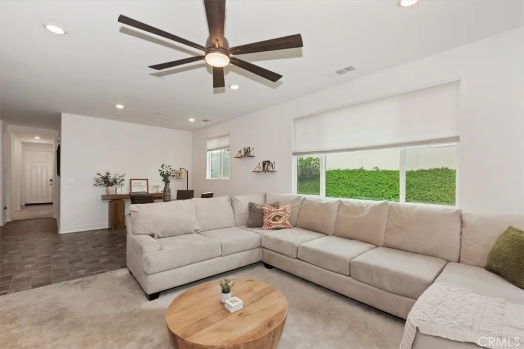 Modern Single-Story Living in Desirable River Ranch Community Built in 2023 and showing like brand new, this beautifully designed single-story home offers the perfect blend of comfort, style, and convenience. The spacious primary suite features a luxurious en-suite bathroom with double sinks, a walk-in shower, and a generous walk-in closet. Two additional bedrooms and a second full bathroom provide plenty of space for family, guests, or a home office. The heart of the home is the large open-concept kitchen, complete with a center island, elegant stone countertops, and abundant cabinetry, flowing seamlessly into the inviting great room and dining area—ideal for everyday living and entertaining. A dedicated laundry room adds convenience, while the two-car garage includes attic storage with pull-down access for added functionality. Step outside to an entertainer’s backyard featuring a durable Alumawood-covered patio, perfect for relaxing or hosting gatherings year-round. Located in the sought-after River Ranch Community, residents enjoy resort-style amenities including a community pool, clubhouse, pickleball courts, basketball courts, walking trails, dog park, playgrounds, and BBQ areas. Conveniently close to shopping, schools, and restaurants, with easy access to the 210 Freeway, making commuting simple. A move-in ready home offering modern living in a vibrant community—this is one you won’t want to miss! ?