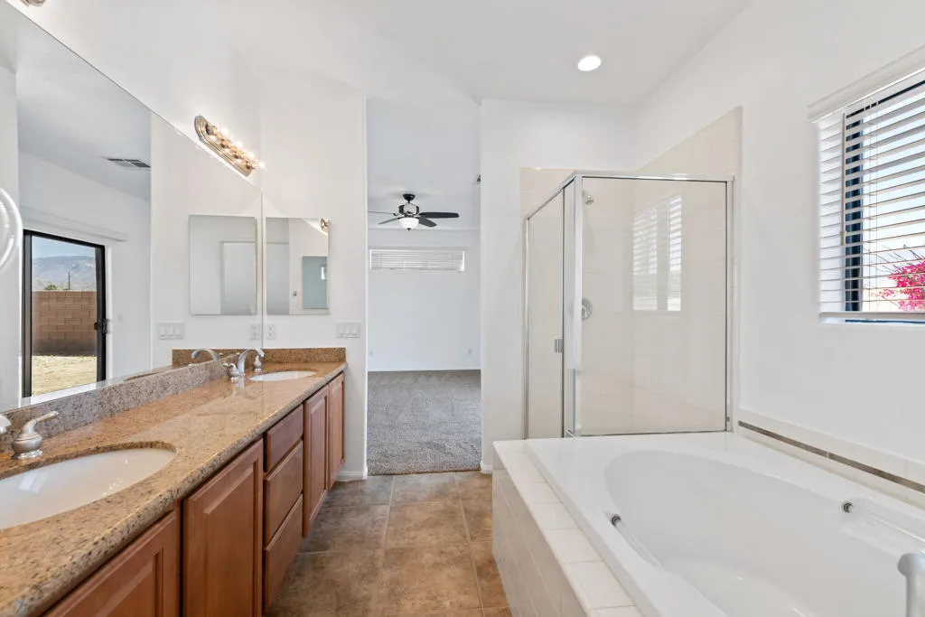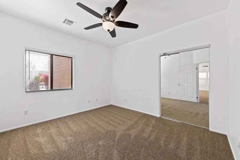 Discover the charm of Santa Fe-style living in this beautifully maintained 4-bedroom, 2-bath home, ideally situated in central Cathedral City. Showcasing breathtaking panoramic mountain views, this residence offers a spacious great room with an open and inviting atmosphere perfect for both relaxing and entertaining. Formal living and dining room.The thoughtfully designed floor plan includes a comfortable primary suite with walk in closet, generously sized secondary bedrooms, and a convenient interior laundry room. Ceiling fans throughout enhance comfort, while the home's clean, move-in-ready condition makes it an exceptional opportunity.Enjoy the convenience of being just minutes from local shopping, dining, freeway access, and a nearby middle school. This pet-friendly property welcomes your furry companions with an additional security deposit.A perfect blend of comfort, style, and location--this is desert living at its best. Perfect for someone with RV/Toys or work vehicle. Available immediately!