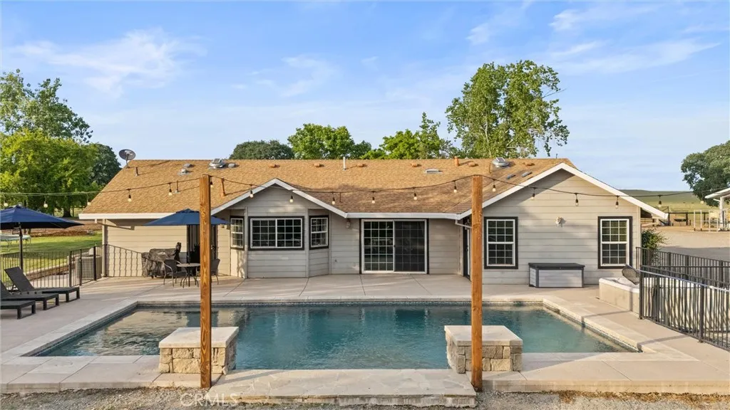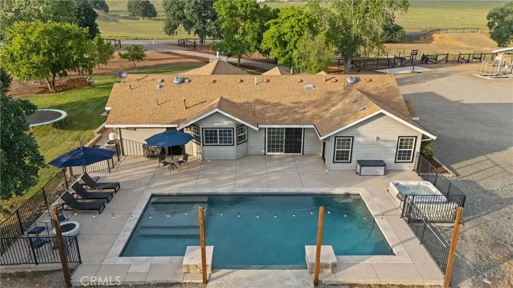 Welcome home to this exceptional country equestrian estate, perfectly nestled in the highly desirable Thomas Creek Estates. This stunning 4-bedroom, 3-bath residence offers approximately 2,690 square feet of beautifully designed living space, blending comfort, functionality, and upscale country charm. This country retreat is located on almost 14 acres of gently rolling hills, which is completely fenced for your animals. Step inside to soaring vaulted ceilings, a striking custom stone fireplace, and an open-concept floor plan that creates a warm yet grand atmosphere. The home features rich hardwood floors, custom cabinetry, and a spacious kitchen-dining-living area, ideal for entertaining family and friends. Open the glass doors to an amazing backyard experience with your own gorgeous pebble-finish pool with elegant waterfall features, creating a resort-like setting right at home. For the hobbyist, rancher, or entrepreneur, the impressive ±2,700 sq. ft. fully insulated metal shop is a standout feature, with an additional 274 sq. ft. attached covered area—perfect for RV parking, equipment storage, or easily convertible into horse paddocks. The three large doors on the shop make it easy to move in and move out your ATV's, boats, trailers or tractors. Equestrian enthusiasts will appreciate the thoughtfully designed amenities, including three fenced pastures with smooth wire, a private riding arena with pipe fencing, with plenty of room to roam, cross ties and a concrete wash rack. There is a large dog yard set up behind the shop for your cow dogs or 4-H animals. The property is further enhanced by a seasonal creek and pond, adding to its natural beauty and tranquility. Additional highlights include OWNED solar a backup generator, offering efficiency and peace of mind, new 1.5hp well pump, fruit trees, fresh paint in most all of the bedrooms, open floor plan, and a completely move in ready home! Enjoy breathtaking panoramic views with unforgettable sunrises and sunsets, all while being located in a sought-after area that offers the perfect balance of space, privacy, and convenience. This is more than a home—it’s a lifestyle. Buyer to verify all information to their satisfaction.
