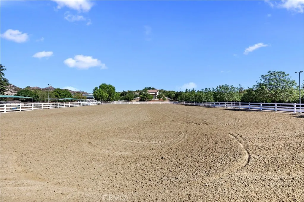 Exceptional custom estate in the Heart of Temecula Wine Country Welcome to Fallen Oak Ranch—an extraordinary equestrian estate perfectly situated in Temecula’s Wine Country, just minutes from award-winning wineries, restaurants, & shopping. The custom-built main residence blends rustic charm with modern sophistication. The designer chef’s kitchen is a showpiece with exposed brick walls, sleek quartz counters, a rich wood-topped island with built-in storage, farmhouse sink, & top-of-the-line stainless appliances including a professional-grade range & oversized refrigerator. Gold hardware, custom cabinetry, & designer lighting create a warm yet refined atmosphere—ideal for entertaining or everyday living. The formal dining room is timeless & inviting with custom wainscoting, soft wallpaper, exposed beams, & a statement chandelier. Natural light pours through plantation shutters onto warm wood floors & a built-in buffet with open shelving—perfect for elegant dinners or festive gatherings. The family room offers relaxed sophistication with a stone fireplace, custom built-ins, & natural light. Plantation shutters, crown molding, & wood floors complete the picture, creating a space that’s both stylish & comfortable. The home includes five spacious bedrooms, five baths, & an office. The luxurious primary suite features a cozy fireplace, wood-paneled ceiling, dual walk-in closets, & a spa-inspired bath with jacuzzi tub & large shower. Additional highlights include surround sound, plantation shutters, dual A/C units, & expansive covered patios for outdoor entertaining. A separate manufactured home offers 2 bedrooms, 2 baths, an office, covered patios, & enclosed yard—ideal for guests, staff, or rental income. Foreman's quarters with 2/1 bath. Equestrian facilities are top-tier with a Blue Ribbon barn offering 16 stalls (8 with runs), automatic waterers, fly spray system, tack room, office, & two wash racks. Riders will love the lighted arena (approx. 130x250)), 60’ round pen, hot walker, & six large outdoor pens with shelters. Sustainably equipped with owned solar (68 panels, 55 kWh storage), high-producing well with five holding tanks, & 2 RV pads with hookups with 50-amp service & waste dump. Fully fenced & gated, the ranch offers peace, privacy, & stunning views of the surrounding hills. Fallen Oak Ranch combines elegance, comfort, & functionality, an exceptional opportunity to own one of Temecula’s premier horse properties.