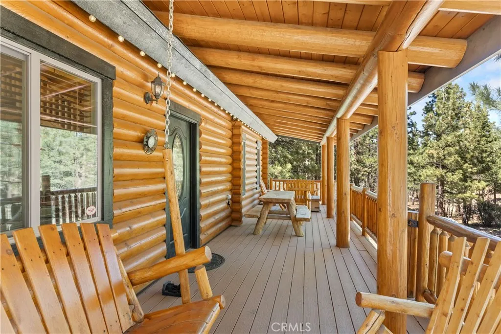 **The Quintessential Secluded Mountain Cabin everyone dreams about—welcome to “Serenity.”** Tucked away on 2.44 acres in a peaceful canyon setting, this modern log cabin offers rare privacy, natural beauty, and the true escape buyers are searching for. Surrounded by wilderness and backing to National Forest and conservation land, you’ll enjoy miles of scenic trails, seasonal stream sounds in the spring, and complete tranquility year-round. Designed for both relaxation and entertaining, the outdoor spaces shine with a spacious deck, spa, fire pit, BBQ area, patio swing, and custom picnic table—your own private mountain retreat under the stars. Inside, the open great room features soaring vaulted ceilings, a cozy pellet stove, and an inviting bar area that flows seamlessly into the kitchen—perfect for gathering with family and friends. The well-appointed kitchen offers generous space and a chef-style stove for easy entertaining. The layout includes two main-level bedrooms with a full bath and classic clawfoot tub, plus a loft-style third bedroom with its own ¾ bath—ideal for guests or flexible use. A separate laundry room adds convenience. Currently a permitted and successful vacation rental with San Bernardino County, this property offers both lifestyle and income potential. Located just minutes from Snow Summit and Bear Mountain, yet feeling worlds away, this is a rare opportunity to own a true Big Bear retreat where privacy, nature, and comfort come together. *Furnishings negotiable.*