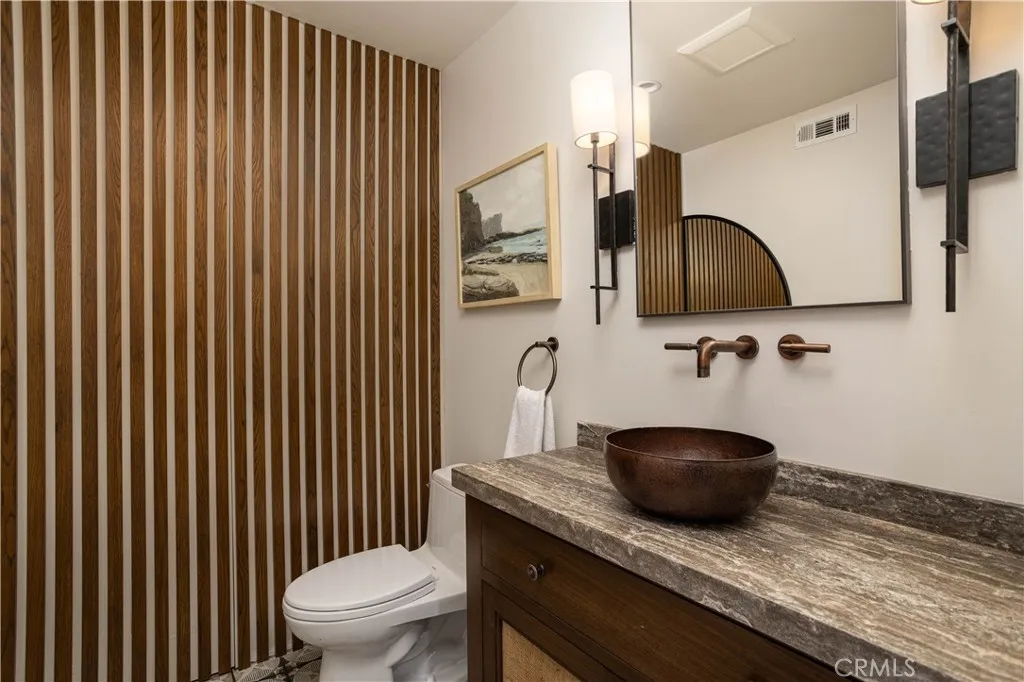 Perched in the coveted enclave of Corona Highlands, 420 De Sola Terrace captures sweeping ocean views and presents a rare opportunity to own a coastal residence in the heart of Corona del Mar. Encompassing approximately 3,500 square feet on a 7,250-square-foot lot, the home offers four bedrooms—including one currently configured as a dedicated office—along with four bathrooms and two powder baths. Thoughtfully reimagined with elevated finishes and modern functionality, walls of glass frame the coastline and flood the open-concept living spaces with natural light. The Viking-appointed kitchen with marble countertops opens seamlessly to the main living area, where Catalina views are enjoyed from the dining table. The primary suite serves as a private retreat, featuring ocean views, a spa-inspired bath, ceiling-mounted drop-down TV, and remote-controlled window treatments. Designed for the ultimate entertainer, the lower level includes a new secondary kitchen with travertine countertops, wine refrigeration, ice machine, dual keg taps, and a custom-built theater. Outdoor living is equally compelling, with multiple new decks, a stargazing terrace with fireplace, and a saltwater pool and spa with all-new systems, surrounded by curated landscaping—offering a range of inviting spaces to unwind. Additional upgrades include integrated AV and audio systems, surround sound, electric shades, designer lighting, and smart home features throughout. A rare opportunity to own a turnkey coastal residence with exceptional views in one of Corona del Mar’s most desirable enclaves. Furnishings available for purchase.