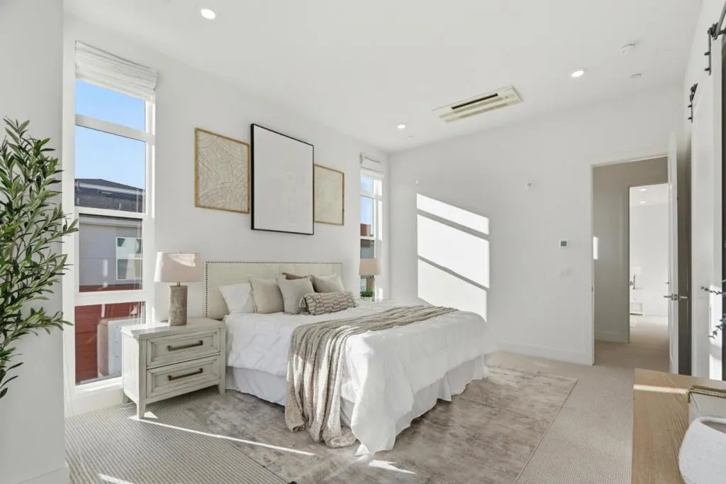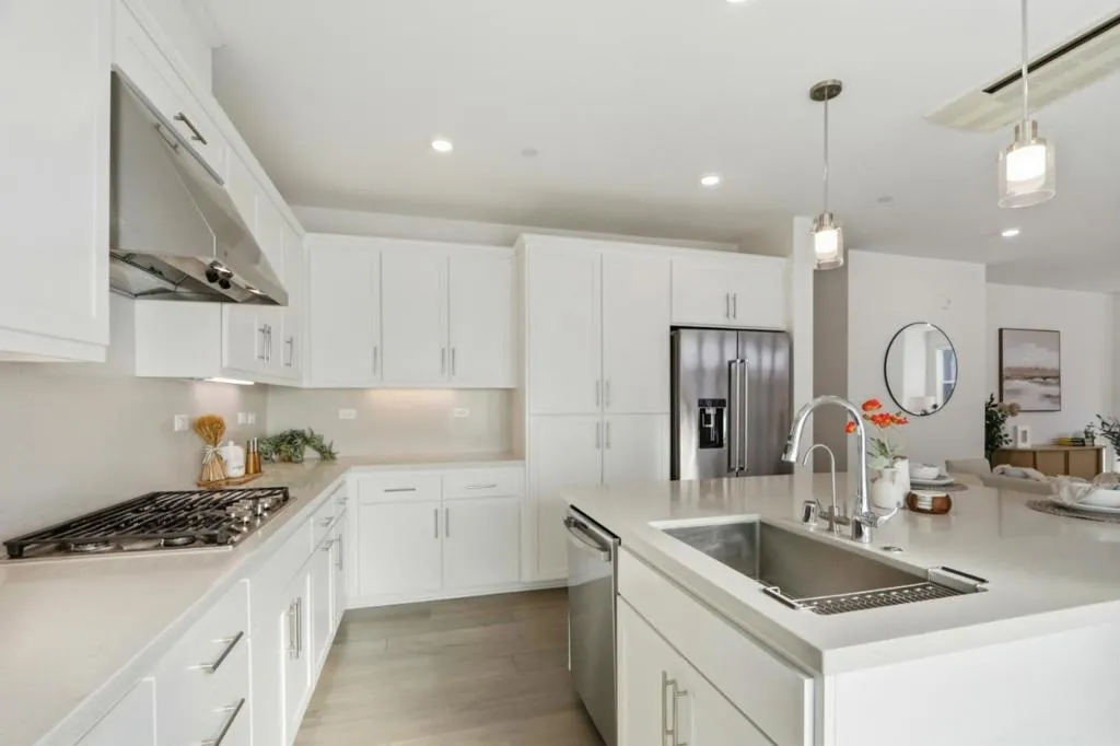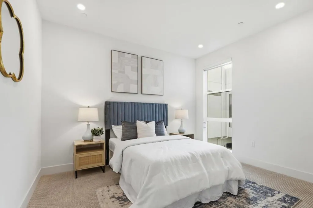 Must-see! Rarely available 3-bedroom plus den end unit corner lot townhome in the Nuevo community, built in 2020 and offering 1,924 sq. ft. of modern living space. This stylish home features three bedrooms, a versatile den, and 2.5 baths, thoughtfully designed for both elegance and everyday functionality. The chefs kitchen shines with stainless steel appliances, quartz countertops, and shaker-style soft-close cabinetry. The spacious primary suite boasts an impressive 11-foot ceiling, a walk-in closet, and a luxurious en-suite bathroom with dual vanities and a walk-in shower. Wide-plank engineered wood flooring flows throughout, complemented by smart home features including recessed lighting. The flexible den is perfect for a home office or guest room. Residents enjoy resort-style amenities such as a playground, basketball court, dog park, and beautifully landscaped common areas. Ideally located within walking distance to Costco and Whole Foods, plus dining and entertainment at Santa Clara Square and downtown Sunnyvale. Just minutes from NVIDIA, Apple, Amazon, LinkedIn, and other major tech campuses, with easy access to major highways and the Lawrence Caltrain Station. Do not miss this rare opportunity to own a modern, low-maintenance home in the heart of Silicon Valley!