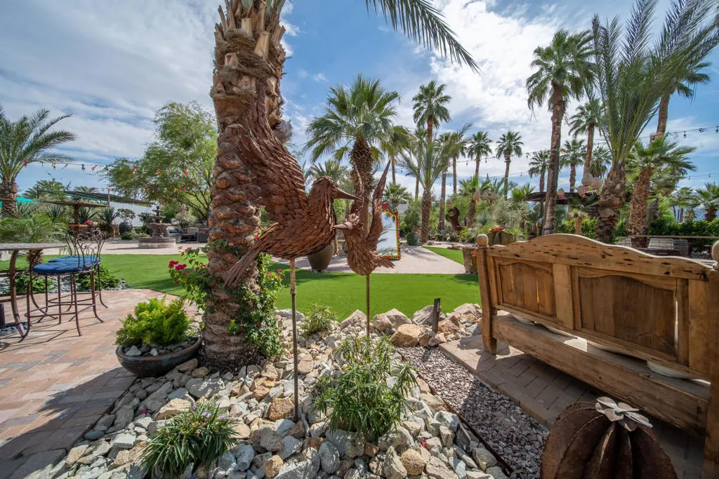 Welcome to a truly one-of-a-kind, nearly 4-acre private estate thoughtfully transformed into a stunning event venue designed to create unforgettable experiences. Recently enhanced with incredible attention to detail, this unique property blends art, nature, and functionality throughout every corner.The grounds feature multiple curated areas ideal for weddings, quinceaneras, private events, and intimate gatherings. From custom woodwork and artistic installations to mature trees, winding walkways, and beautifully designed gathering spaces, every element has been carefully crafted to create a magical atmosphere.The venue area is a standout, complete with a stage, bar and kitchen area, restrooms, and an abundance of seating and lounging spaces that offer both comfort and charm. A striking heart-shaped sculpture with wings serves as a captivating centerpiece, creating a picture-perfect backdrop for unforgettable moments.Additional highlights include unique art displays, sculptures, serene sitting areas, and expansive open spaces that allow for flexible event layouts. The property's thoughtful design and recent improvements showcase the pride of ownership and passion poured into creating a truly special destination.The property also offers excellent income potential, as portions of the ranch are currently leased for storage and trailer parking. Features include two covered RV parking areas and storage containers, adding versatility and additional revenue opportunities.With ample space and flexibility, there is also potential to build a custom home, allowing you to create a private residence while continuing to operate or expand the venue.Whether you're looking to continue operating as an event venue, invest in a one-of-a-kind property, or create your own private retreat, this exceptional estate offers endless possibilities.Not all trees, plants, and nursery inventory are included in the sale. Select items are available for purchase outside of escrow. Please contact listing agent for details.Active venue with scheduled events. Buyer must agree to honor all booked events. Contracts and deposits to transfer to Buyer at COE. Contact listing agent for event schedule, deposit amounts, and details prior to submitting offer.