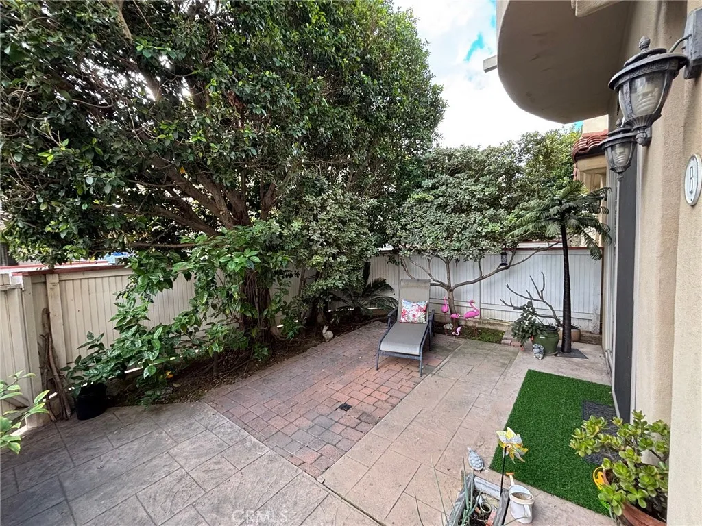 Not your typical townhome! A Mediterranean style with soaring high ceilings on both levels and over 1400 square feet. Open the gate to reveal a private patio space perfect for BBQ's and entertaining. Once inside, the wow factor kicks in. One large open concept living area where you have sight lines from the kitchen -through the living room- to the patio. Be a part of the action. The living room features a beautiful stone tile fireplace that adds warmth and charm to the home. The kitchen enjoys tons of counter space ,a breakfast bar, wood cabinetry and a walk in pantry for fantastic storage. There is direct access to the 2 car garage and laundry area. The half bath is tucked away nicely. Upstairs there are 2 HUGE primary suites with vaulted high ceilings, balconies, private bathrooms and huge walk-in closets. The main one has an East facing balcony "think sunrise", a desk area (or seating nook) and a romantic fireplace. That ensuite has a dual vanity, tub shower combo and a walk in closet. The other primary bedroom suite has a West facing balcony "think sunsets". Same soaring high ceilings, private bathroom and walk in closet. This set up is perfect for room mates. At the top of the stairs, on the landing there is enough bonus space for an office desk area. There are so many good things about this home like air conditioning, an extra parking spot, ceiling fans and storage shelves in the attached garage. Award winning Torrance school district. This one is a must see!