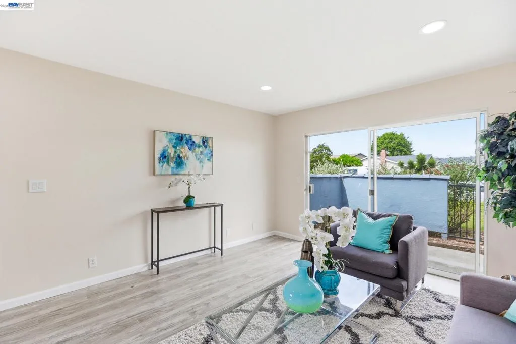 Rarely available! One-story end unit with a 2-car garage in a very desirable location, Corner unit with windows on 3 sides makes it Bright & Comfortable , Nicely updated for immediate move in! , Updated Kitchen , New electric stove/hood, New refrigerator, New laminate floors , Fresh interior paint , recessed lighting , Spacious updated bathroom, Peaceful/private patio between home and garage for relaxation. 2nd patio off living room , Front door opens to greenbelt , Close to Union Landing for shopping , restaurants/Century 25 theatre , Easy access to schools/parks/sports center/ BART/I-880/Dumbarton & San Mateo bridges.