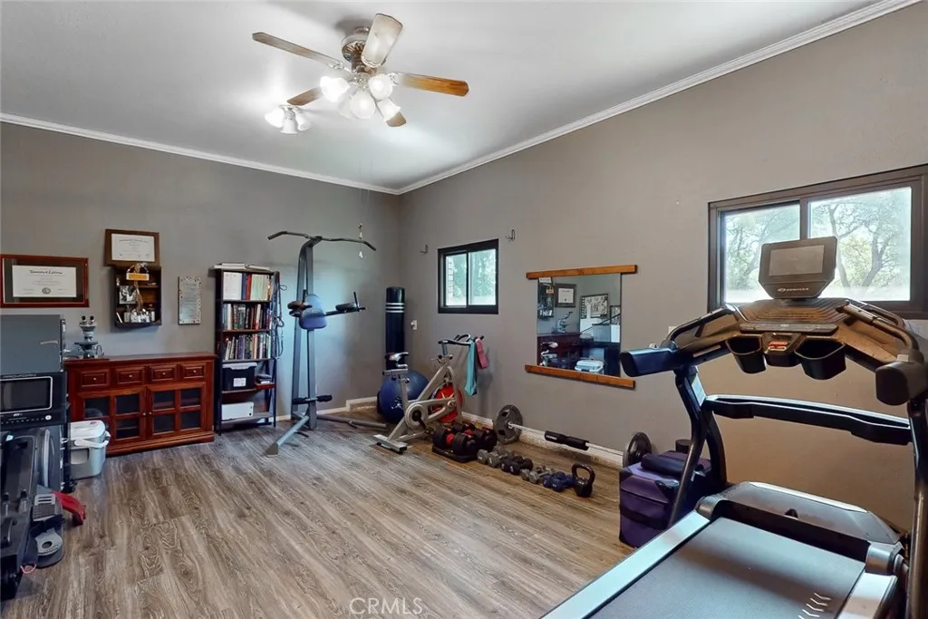 Welcome to 7005 Cross Star Trail, nestled in the peaceful countryside of Loma Rica, this beautifully maintained property offers the perfect blend of comfort, functionality and rural charm. This spacious 2032sqft 3 bedroom, 3 bathroom home features a versatile floor plan, including a full bathroom on the main level--ideal for guests. The kitchen showcases painted cabinetry, butcher block countertops and updated appliances, flowing seamlessly into a generous dining area that can also serve as a secondary family room. Step outside onto the rear grilling patio--perfect for entertaining and enjoying the serene surroundings. The front living room is bright and inviting offering expansive views of the property and lush landscape, while durable laminate flooring, tile and LVP throughout the home makes country living both practical and stylish. Another great feature is the converted garage now bonus room/home gym with lots of potential for a number of uses. Upstairs you will find two spacious bedrooms and an updated guest bathroom. The oversized primary suite is the perfect place to escape from it all with lots of natural light, updated ensuite bathroom, walk in closet and private exterior access to the covered deck --an ideal retreat to unwind and take in the tranquil setting. The property is thoughtfully set up for equestrian use, featuring three 10x12 stalls, feed room, large, covered area for equipment, cross ties or additional storage. A 30x50 shop provides ample space for projects, parking or storage. The lush green grounds stay green year round thanks to BVID irrigation water and the right care, the two existing pastures have additional open air covered stalls and help reduce feed costs tremendously. Additional highlights include owned solar, recently updated AC system, New windows, a custom electric gated entrance, mature landscaping and a variety of fruit trees--including apple, plum, cherry, nectarine and peach. This serene and versatile property offers endless possibilities--whether you are seeking a hobby farm, equestrian retreat or simply a peaceful place to call home.