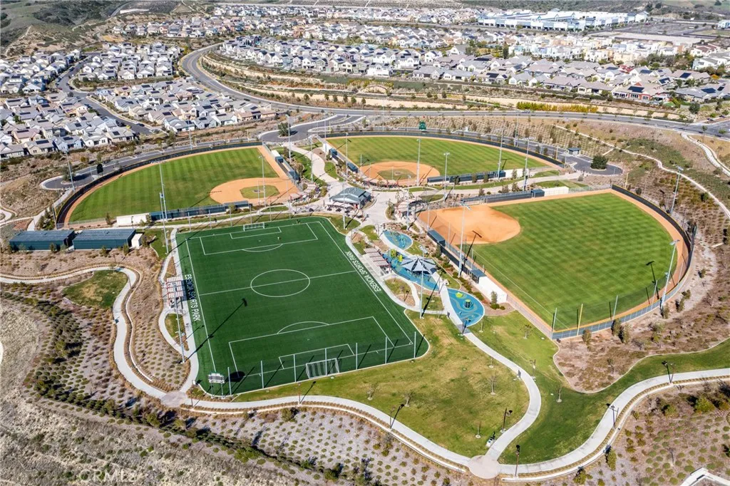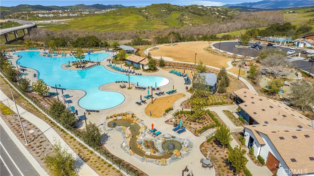 This beautifully designed top-floor Portico residence offers single-level living with 2 bedrooms, 2 full baths, and a generous den that can serve as a home office, or 3rd bedroom. The open-floorplan seamlessly connects the Great Room, kitchen, and dining areas, extending to a private balcony perfect for relaxing outdoors. The beautiful kitchen features a large island with quartz countertops, stainless steel appliances, soft-close cabinetry, and a gas range. Custom designer lighting highlights the spaces with gorgeous gold and glass chandeliers in the living room, beautiful glass teardrop pendants gracefully hung over the primary countertop, and oversized chandelier over the primary bedroom. The spacious primary suite, is located on one side of the home with the second bedroom on the opposite side, and the den in the front hallway creating privacy for all. The primary suite boasts a walk-in tiled shower, quartz countertops with dual sinks, and walk-in closet. Spacious secondary bedroom is light and bright and the perfect room for guests, children or a roommate plus having the separate den means you don't have to compromise a bedroom for an office. Beautiful LVP flooring, custom window coverings, tankless water heater, full sized washer and dryer plus Solar system completes this wonderful home. The garage is conveniently located next to the stairs and provides parking and ample storage. Located in the Award Winning Rancho Mission Viejo, Residents enjoy access to world class amenities in all 3 Rancho Mission Viejo villages including Ranch Camp with the 20,000 sq ft Lagoon Pool, firepits, lap pool, fitness center walkable from the property. Plus enjoy walkable access to the Boulder pond with walking path, playground and the Rienda k-8 School slated to open in Fall 2027. Welcome Home!