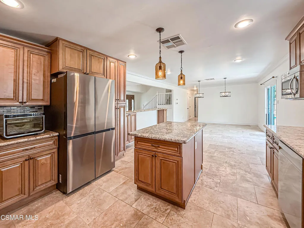 Tastefully remodeled and move-in ready, this stunning Conejo Heights home in Newbury Park is an entertainer's dream! Freshly painted inside and out, the home showcases thoughtful upgrades throughout, including a newer roof and elegant shutters that enhance both style and functionality.At the heart of the home is a beautifully updated gourmet kitchen featuring a spacious center island, new cabinetry, granite countertops, stainless steel appliances, travertine flooring, and recessed lighting--perfect for both everyday living and hosting gatherings.The open and inviting layout offers bright living spaces, while the spacious primary suite provides a relaxing retreat with its own ensuite bathroom. A versatile bonus room adds flexibility and can be used as a home office, guest space, or additional lounge area to fit your needs.Step outside to your private backyard oasis, complete with a sparkling pool--ideal for entertaining or enjoying warm California days. A downstairs bedroom and full bathroom offer added convenience for guests or multi-generational living.Located in the desirable Conejo Heights neighborhood and close to parks, shopping, and top-rated schools, this home offers the perfect blend of comfort, style, and location.