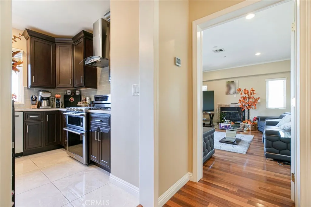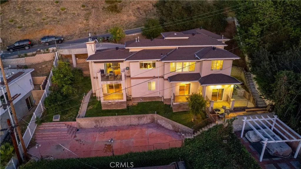 Beautiful, newer two-story view home—a secluded modern hideaway with stunning designer finishes and breathtaking panoramic vistas. This three-bedroom, five-bathroom residence offers the perfect blend of sophistication, comfort, and style in Glendale’s desirable Adams Hill neighborhood. Step inside to discover gleaming teak hardwood floors that exude warmth and elegance throughout. The inviting family room with a cozy fireplace opens to a view balcony, ideal for entertaining or quiet evenings at home. A second fireplace in the primary suite creates the perfect retreat, with its own private balcony overlooking city lights and mountain horizons. The gourmet kitchen features rich cabinetry, sleek counters, and travertine tile finishes, inspiring even the most discerning chef. Downstairs, a second full kitchen offers exceptional convenience for hosting guests with access to the backyard. A private driveway leads to a two-car garage with direct access into the home. Outside, multiple balconies and garden seating areas surround the property, inviting you to relax and take in the expansive views. Centrally located, just minutes from The Americana at Brand, Downtown LA, Silverlake, Pasadena, and Burbank—this is truly an Adams Hill pride of ownership home, offering elegance, privacy, and modern living at its finest.