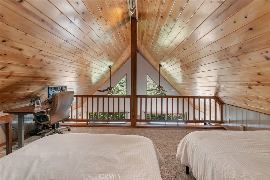 This home is a rare blend of timeless mountain charm and serene privacy. Tucked away on a secluded, tree-lined lot just minutes from the Village and the lake, this enchanting retreat is surrounded by mature dogwood trees that burst into stunning bloom each early spring, creating a truly magical setting. A gentle creek runs alongside the property, adding a soothing natural soundtrack and enhancing the peaceful, storybook atmosphere. Adding to its unique character, this charming treehouse is tucked among the trees perfect for quiet escapes, creative space, or a whimsical retreat. A warm and expansive wraparound decking that seamlessly brings the outdoors in. Ideal for entertaining or simply unwinding in nature. A like Frame open living space. 2 spacious bedroom, and a charming 3rd bedroom Loft. One bathroom in primary suit and 2nd bathroom in hallway, both beautifully remodeled. Roof 2 years old, offering peace of mind alongside its charm. Thoughtful elements such as a loft retreat, workshop space, and room for expansion add both character and versatility. This is a turnkey property, ready for immediate enjoyment, with select personal items excluded. Surrounded by towering trees and lush natural landscape, this private escape delivers the perfect balance of comfort, character, and convenience. Whether enjoying crisp mountain mornings or stargazing in complete privacy, this property captures the essence of elevated Lake Arrowhead living.