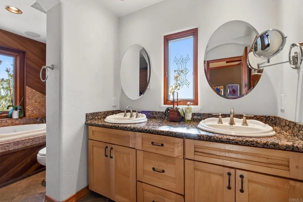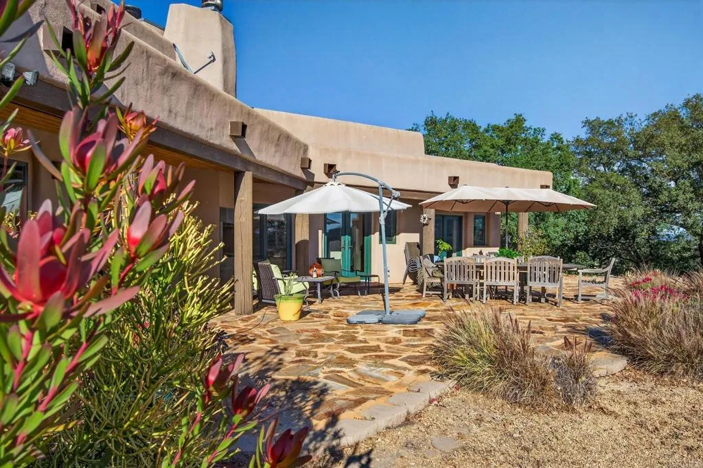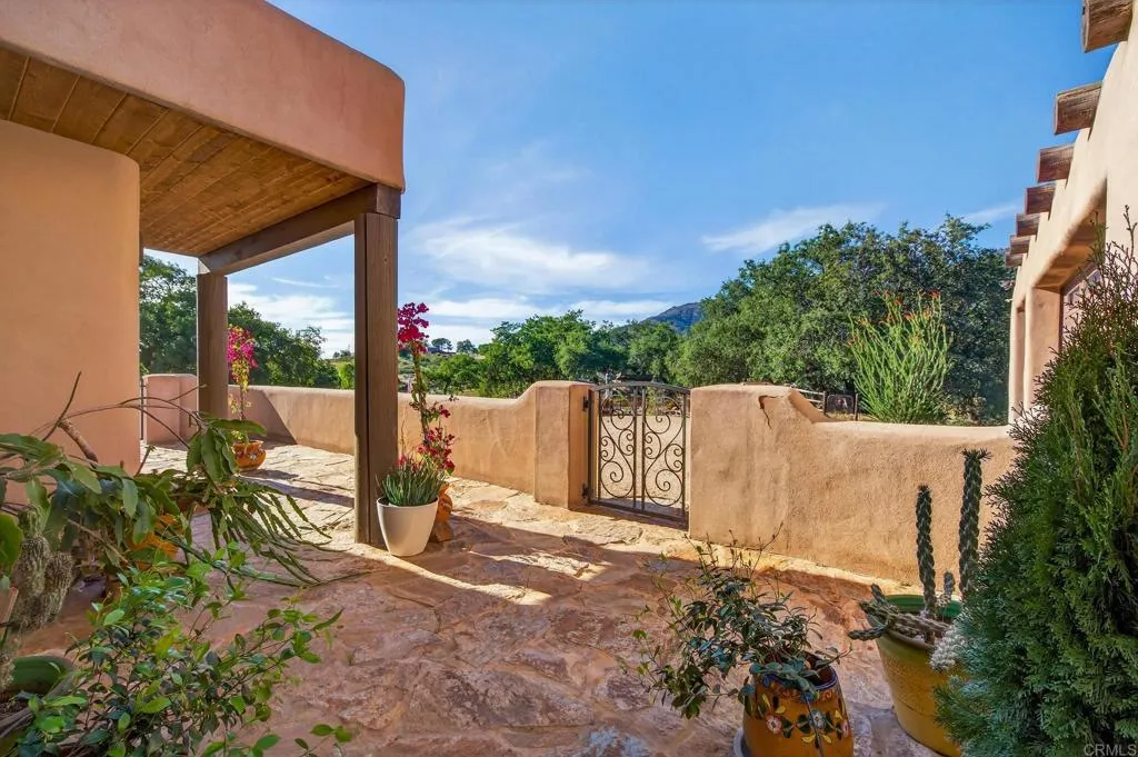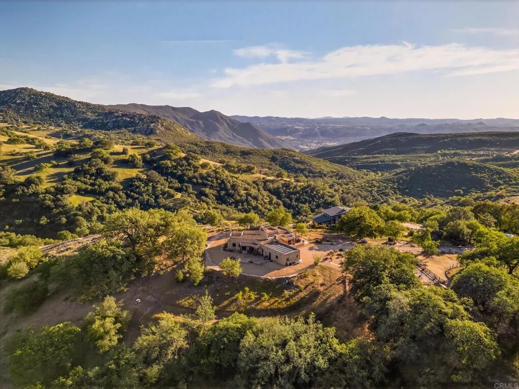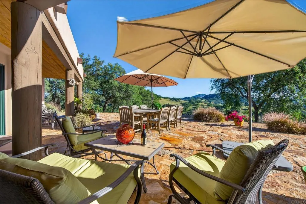 Set against the breathtaking foothills of Palomar Mountain, Horizon Ridge Hacienda offers a rare blend of craftsmanship, comfort, and a highly usable, versatile 4.06-acre setting. With sweeping 360-degree panoramic views, the property provides an exceptional backdrop where golden sunsets, rolling hills, and endless skies become part of your everyday experience. -The thoughtfully designed Southwest-style custom home is beautifully maintained and rich in character. Welcomed by a dramatic skylit entry and filled with natural light from expansive windows and doors, the home captures picturesque views from every room. Unique architectural details and exposed wood beams create a warm, inviting ambiance that blends comfort with timeless style. -The spacious layout features 4 bedrooms and 2 1/2 baths, with the flexibility to convert the dining area into a fifth bedroom if desired. Dual living areas, centered around a cozy fireplace, flow effortlessly into a functional kitchen, creating an ideal setting for both everyday living and entertaining. The primary suite offers a private retreat, complete with a luxurious stone walk-in shower and soaking tub. Additional features include an indoor laundry/utility room, dual-zoned HVAC, whole-home surround sound, and a three-car attached garage. -Indoor and outdoor living merge seamlessly, with multiple areas designed for relaxation and gathering. Enjoy cozy evenings by the patio fireplace with sweeping southwestern views, unwind beneath the trees beside a tranquil koi pond, or take in the horizon from the expansive rooftop deck, an exceptional vantage point for entertaining, sunset watching, or quiet reflection under the stars. -Beyond the residence, the land offers a lifestyle rich with opportunity and self-sufficiency. A one-acre vineyard with five varieties of grapes invites your own wine or juice-making pursuits, complemented by producing fruit trees and a large, fenced garden area for cultivating your own harvest. A separate studio provides flexible space for guests, creative endeavors, or a private office. Enjoy fresh eggs from a spacious chicken coop that allows hens to roam freely. Beautifully maintained, drought-tolerant landscaping, anchored by majestic oaks, enhances both the charm and functionality of the property. With A70 agricultural zoning, the land supports a wide range of uses, making it ideal for hobby farming, homesteading, or simply enjoying a versatile and productive outdoor lifestyle at your own pace. -The property is equipped with an owned grid-tied solar system and backup generator, offering both energy efficiency and reliability. Water service is provided through a shared community water system, while a gated private entry and paved access directly off Highway 76 ensure both security and convenient accessibility. -Known for its quiet rural charm, scenic groves, and close connection to nature, Pauma Valley offers a unique balance of peaceful country living with convenient access to nearby urban amenities. Just minutes away, Palomar Mountain invites endless outdoor recreation, from hiking and exploring forested trails to stargazing under clear night skies and enjoying the area’s ever-changing seasonal beauty, making it a true haven for nature enthusiasts year-round. -At Horizon Ridge Hacienda, lifestyle, land, and lasting beauty come together, offering more than just a home, but a place to create, unwind, and truly live.