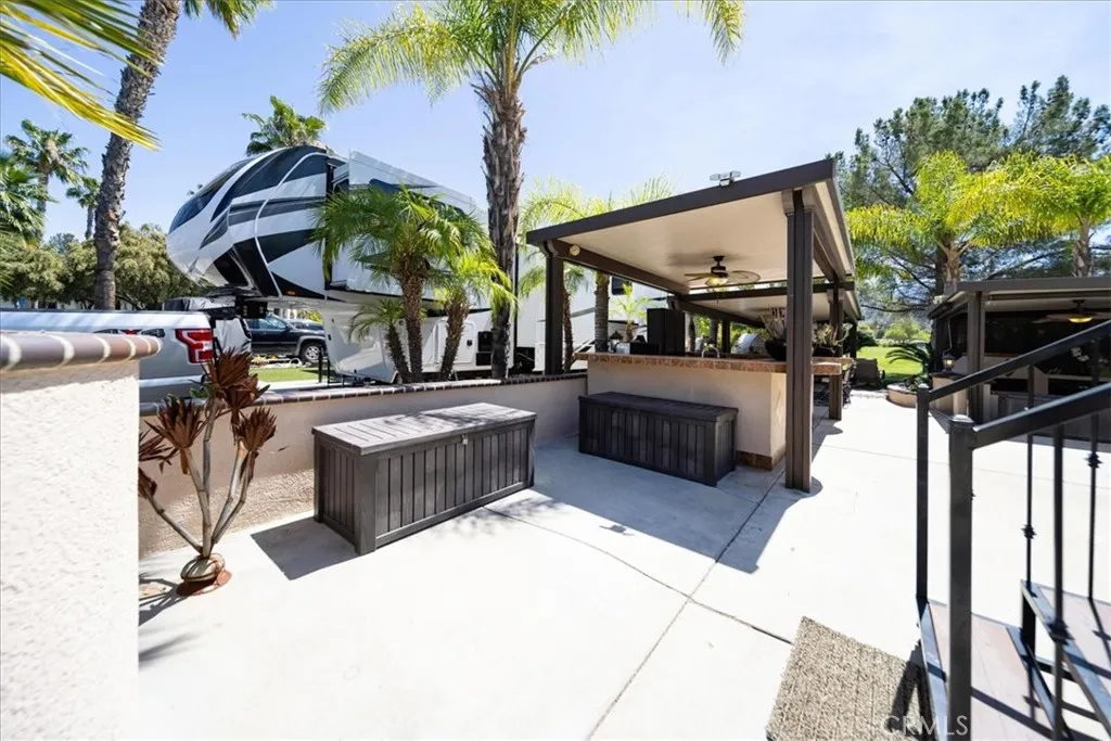 Amazing elevated property offering stunning water and golf course views, ideally located near the main clubhouse and overlooking golf hole #11. This premium site is designed for exceptional outdoor living, featuring a spacious layout with multiple entertaining areas and beautiful curb appeal. The property is well-equipped with convenient amenities including a washer and dryer, oven, dishwasher, electric cooktop, double sink, and full-size refrigerator—providing all the comforts needed for extended stays or full-time living. Three ceiling fans enhance comfort throughout the outdoor living spaces. A large Alumawood cover creates three distinct living areas, perfect for relaxing or entertaining guests. One of the standout features is the fully screened-in, sunken “man cave,” complete with a built-in fireplace and dedicated TV area—an ideal retreat for year-round enjoyment. Additional highlights include golf cart parking, a spacious patio, and thoughtfully designed outdoor spaces that take full advantage of the incredible water and golf course views. Located within Rancho California RV Resort, a gated and 24/7 guard-controlled community offering resort-style amenities including a 14-hole executive golf course (free for owners), 5 pools and multiple jacuzzi areas, tennis courts, pickleball courts, dog park, horseshoe lawn, laundry facilities, hiking trails, clubhouse, on-site restaurant, and market. HOA includes water, sewer, trash, and common area maintenance. Whether you’re looking for a full-time residence, vacation getaway, or income-producing property, this is a fantastic opportunity to own a view property in one of Southern California’s premier RV resorts. Financing available.