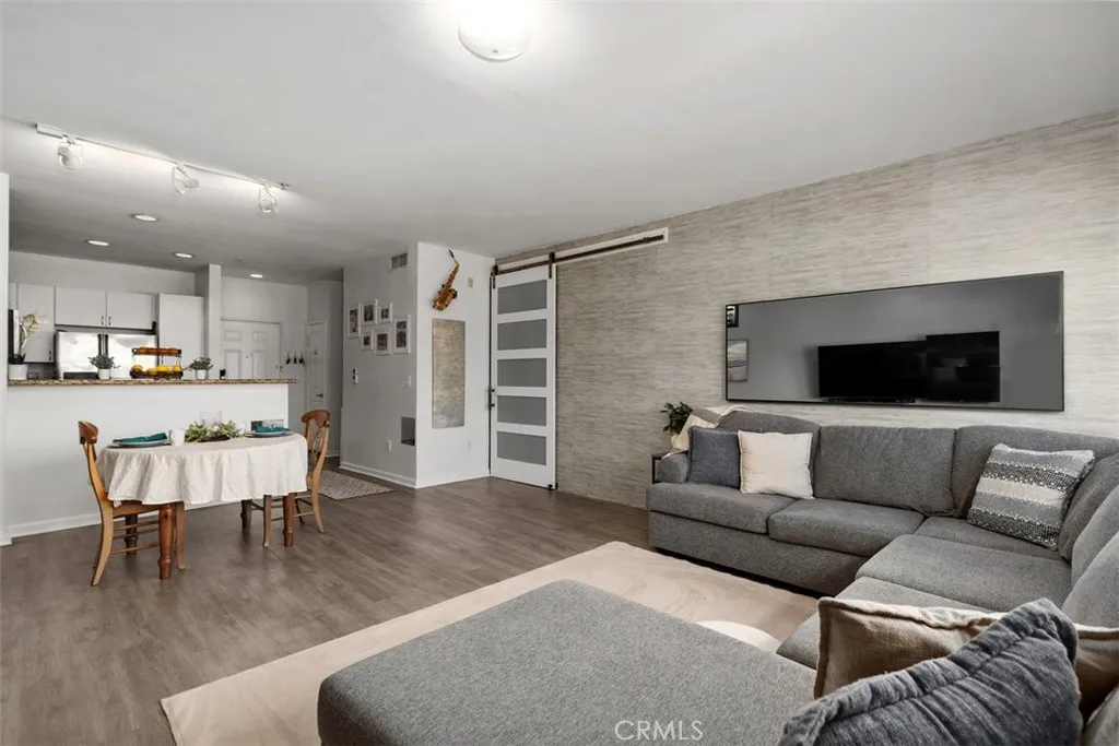 Resort-style living in the heart of it all! This beautifully updated one-bedroom condo with city views at Stadium Lofts offers rare privacy, with only one shared wall and no unit below. Ideally situated near Angel Stadium, the Honda Center, and the OC Vibe entertainment district, the location is as dynamic as it is convenient. Originally an open layout, this thoughtfully reimagined home now features a one of the larger bedrooms and living rooms in the complex, enclosed by a sleek wall and contemporary barn door. As one of the larger one-bedroom residences in the community, it boasts wood-look vinyl flooring, smart Alexa-enabled window shades, a custom vanity, in-unit laundry, and more. Residents enjoy the security of a gated community along with an impressive array of amenities, including a sparkling pool and spa, BBQ area, fitness center, clubhouse, business center, EV charging stations, and beautifully maintained grounds. HOA dues conveniently cover water, trash, and Wi-Fi, adding even more value to this exceptional offering.