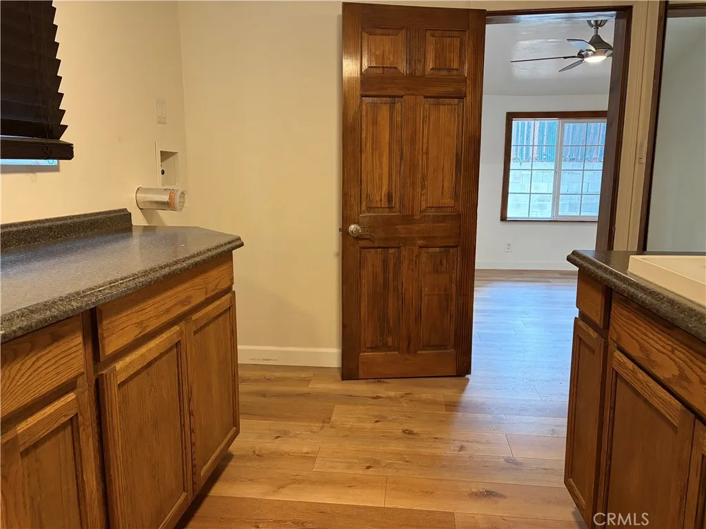 5 BR/2 BA. Highly desired mountain home with rare level entry with no stairs to climb to the front door. Only 2 bedrooms are upstairs in the loft area. The level entry room includes the main largest bedroom, large bathroom with the stacked washer dryer unit hook up, dining room, kitchen and living room. The next level down includes 3 steps downward to two more bedrooms with another full bathroom. This house might be bigger than 1500 sq ft but that would need to be verified by the buyer. This home has recently been renovated with a fresh coat of paint on the outside and the inside, new wood plank laminate flooring throughout the whole house, new fixtures through the whole house, new kitchen cabinets, dishwasher, stove and microwave. Very generous concrete paved pathways flow all around the house w/ample parking space inside the gate & on the street. A covered breezeway leads to the attached workshop. A detached Storage room has a brand new roof and not new electricity. Grab this one fast, it won't last long at this price.