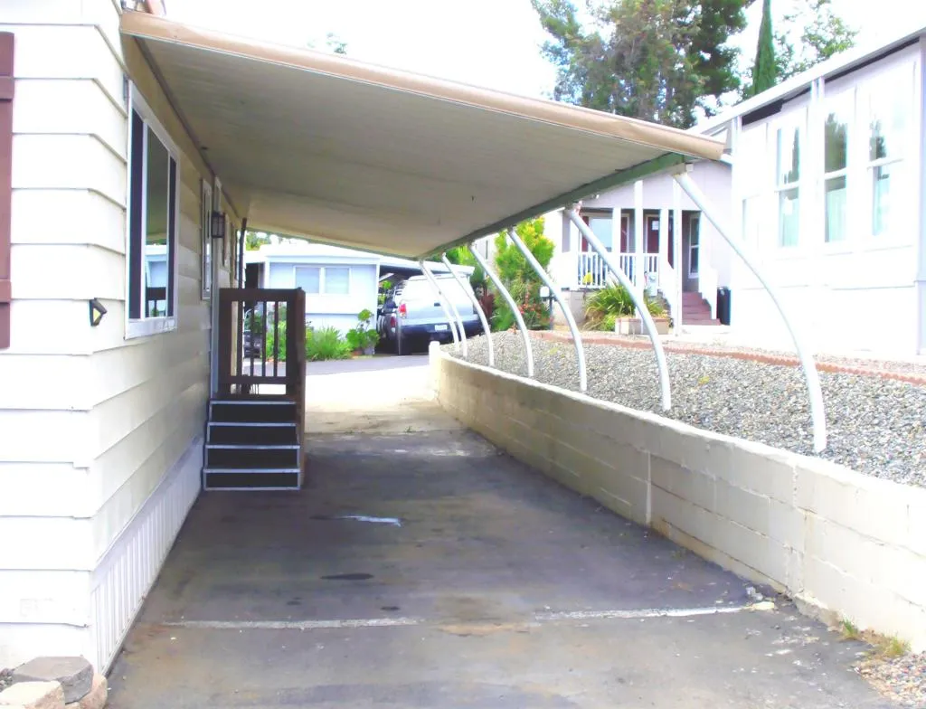 Outstanding remodeled mobile home. Clean and updated. New roof with 10 yr. transferable warranty installed in 2026. Remodeled kitchen with new cabinets, counter tops, sink, faucet, garage disposal and new neutral laminate flooring. Bathroom updated with low-flush toilet, corner shower , vanity with sink, faucet and flooring. New carpet throughout. Newly painted inside and out. HVAC serviced 2026. Newer dual paned windows for energy efficiency. Water heater replaced 2024. Stackable washer/dryer unit stays. 3-4 car parking. Sunroom built out into second bedroom. Low maintenance landscaping. Park offers community swimming pool, spa, shuffle board, exercise room, library, community room for events and gatherings and recently remodeled kitchen. The park also offers a unit to be rented for a nominal fee for visiting family. RV parking available for a fee. Close to grocery stores, restaurants and banks. Bus stop outside the park. Low space rent of $876.16