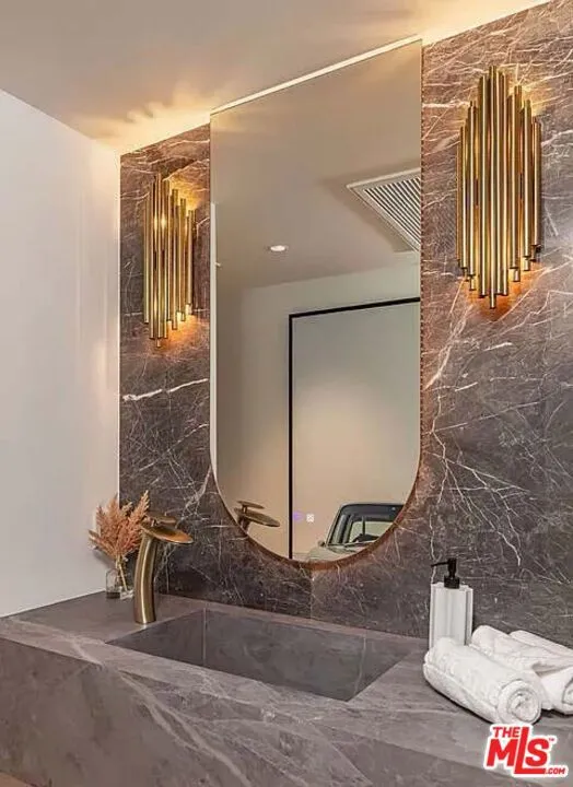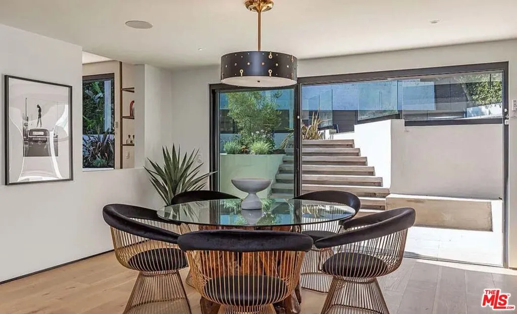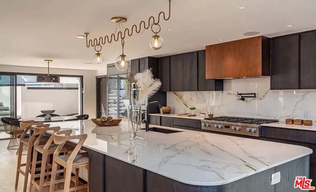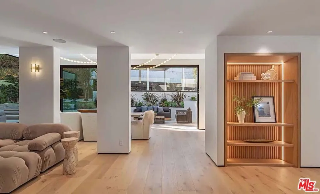 Fully furnished and turnkey for short and long-term lease. Welcome to this exquisite gated residence located just above the Sunset Strip, where luxury and design blend seamlessly to create a stunning living experience. Natural wide plank oak floors flow throughout the open-concept layout, setting the tone for the home's warm and inviting aesthetic. The massive kitchen is a chef's dream, featuring top-of-the-line Miele appliances, a custom zinc-finished hood, elegant marble countertops, and a striking custom brown rounded island, perfect for those who love to entertain. The home's attention to detail continues with a custom chevron floor landing that highlights the staircase, complemented by a vintage-inspired 1940s iron railing, adding a timeless touch to the modern elegance of the space. The primary suite is a serene escape, featuring two large walk-in closets, a cozy seating area, and its own private staircase leading directly to the pool and spa for seamless indoor-outdoor living. Each bedroom boasts its own private patio, creating personal sanctuaries for every member of the household. Outside you will find a large pool and spa complemented by an alfresco dining area beneath a stunning automatic pergola. The outdoor fire pit and spacious patios provide additional areas for lounging and gathering. Thoughtfully designed lighting enhances the space, creating a captivating ambiance for evening gatherings. The expansive, private backyard offers ample room for relaxation, while one of the balconies reveals sweeping city views, adding to the allure of this exceptional outdoor oasis. Additional features include a gated driveway that accommodates up to five cars, a two-car garage, and the convenience of being minutes away from the iconic Sunset Plaza.