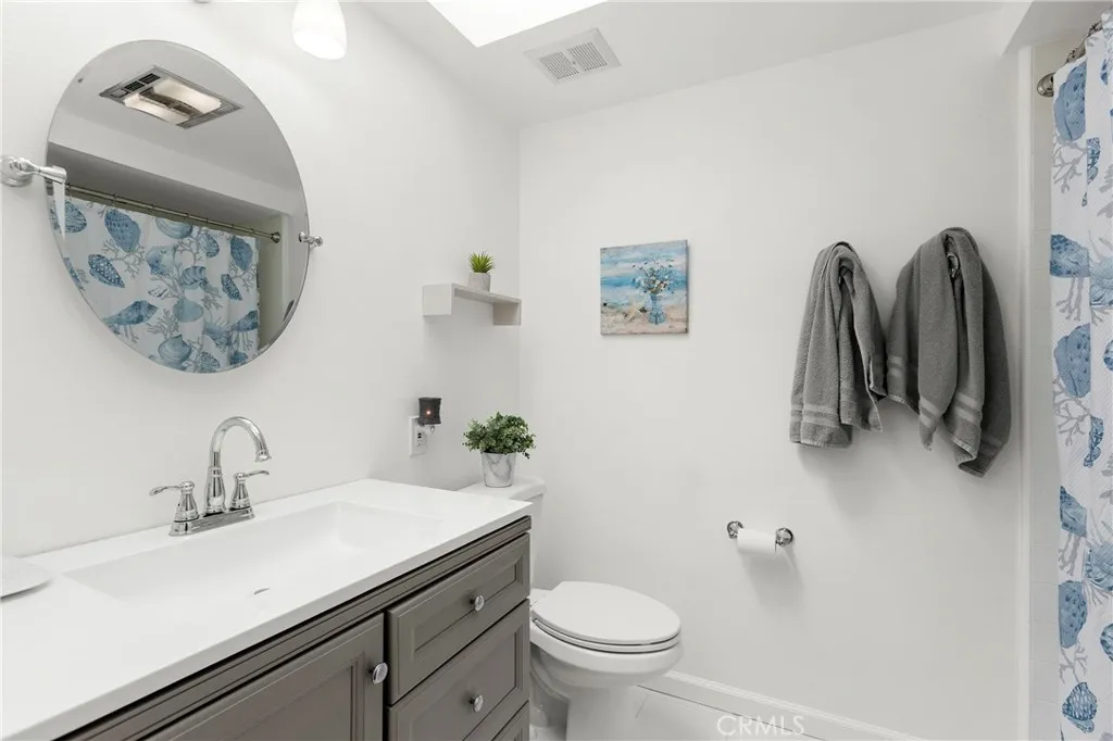 No one above • No one below • Single-level living • South-facing natural light • Nob Hill location. Popular Casa Linda floor plan offers 1,009 sq ft of single-level living with zero stairs from carport to front door. 2 bedrooms and 2 bathrooms. Located in the sought-after Nob Hill section of Laguna Woods Village, a guard-gated 55+ active adult community. Dedicated carport with built-in cabinets and guest parking just steps away. South-facing orientation fills the home with natural light. Ductless mini-split system with three air handlers provides zoned heating and cooling in the living room and both bedrooms. Full-size LG ThinQ Wi-Fi washer and dryer included. Wood flooring in main living areas, tile in kitchen and baths. Ceiling fans and LED lighting. Kitchen features painted cabinets, glass tile backsplash, and skylight. Both bathrooms remodeled with new vanities, new tile flooring, and updated lighting. Primary bath includes walk-in shower. Guest bath features skylight and dedicated storage cabinet. Dual-pane windows. Newer insulated front door with retractable screen. TV stand with electric fireplace conveys. Pavered stone patio. Zillow 3D tour available. Just 7 miles to Laguna Beach — internationally recognized for its scenic coves, coastal bluffs, world-class art galleries, and acclaimed dining. Irvine Spectrum Center 4 miles away. John Wayne Airport (SNA) approximately 20 minutes. Also nearby: Laguna Coast Wilderness Park (miles of hiking and nature trails), Aliso Creek Trail, Reborn Coffee (0.3 mi), Coffee Bean & Tea Leaf (0.5 mi), Starbucks (El Toro Rd and Moulton Pkwy), Stater Bros. Markets, Laguna Hills Mall, and MemorialCare Saddleback Medical Center. Resort amenities include 5 pools, 3 fitness centers, 2 golf courses, 10 tennis courts, pickleball courts, equestrian center, dog park, 7 clubhouses, 814-seat performing arts center, and 200+ clubs and arts studios. HOA includes water, trash, cable, exterior maintenance, and community bus service.