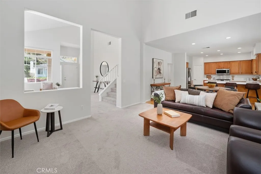 Updated with new interior paint and new carpet, 3 bedroom plus loft home featuring a 3 car attached garage with pull through access and a large private backyard, and located in the highly desirable Stone Crest community in Santa Clarita, this move in ready home offers 1825 sq ft on a spacious 9331 sq ft lot. Owned by the original owners and meticulously maintained, the home features a smartly designed kitchen with stainless steel appliances and solid wood cabinetry that overlooks the dining area and family room with soaring ceilings and a cozy fireplace, creating an open and functional layout for everyday living and entertaining. A high end dual zoned HVAC system provides efficient heating and cooling throughout. Upstairs, the loft offers a versatile space that can be used as an office, playroom, or easily converted into a 4th bedroom. The primary suite includes a walk in closet and an attached bathroom with dual sinks. The laundry room is conveniently located inside and features additional storage and a long counter for added functionality. The backyard is lush and private with ample space to relax or entertain. Additional highlights include no HOA, no Mello Roos, and a location in Santa Clarita that is both freeway convenient and tucked away within the community.