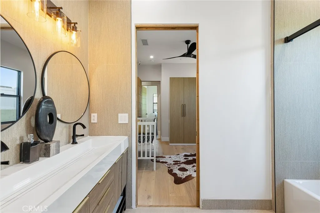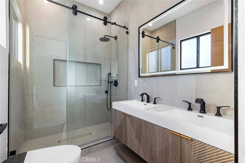 Welcome to 19537 and 19539 Mobile Street. Stunning newly rebuilt smart home with a New Pool, on a quiet residential street in Tarzana adjacent, offering luxury finishes, modern design, and income potential. Originally built for the owners, no detail was overlooked. The main home features approx. 2,040 sq ft with 4 bedrooms and 3.5 bathrooms, soaring 10-ft ceilings, and a custom white oak kitchen with premium Thermador appliances. Finishes include imported Italian tile, designer bathrooms, engineered hardwood floors, and upgraded aluminum windows throughout. A detached 400 sq ft ADU offers 1 bedroom, 1 bathroom, full kitchen, and 14-ft ceilings—ideal for guests or rental income. Equipped with a state-of-the-art Elan smart home system with over $150K in automation, including integrated audio, indoor/outdoor speakers, 16 cameras, and full smartphone control. DoorBird intercom system provides remote access to both driveway and pedestrian gates. Fully gated and private with a telescopic automatic gate featuring an 18-ft opening. Proforma combined rental potential of approximately $9,000/month. A rare turnkey opportunity combining luxury living with strong income potential.
